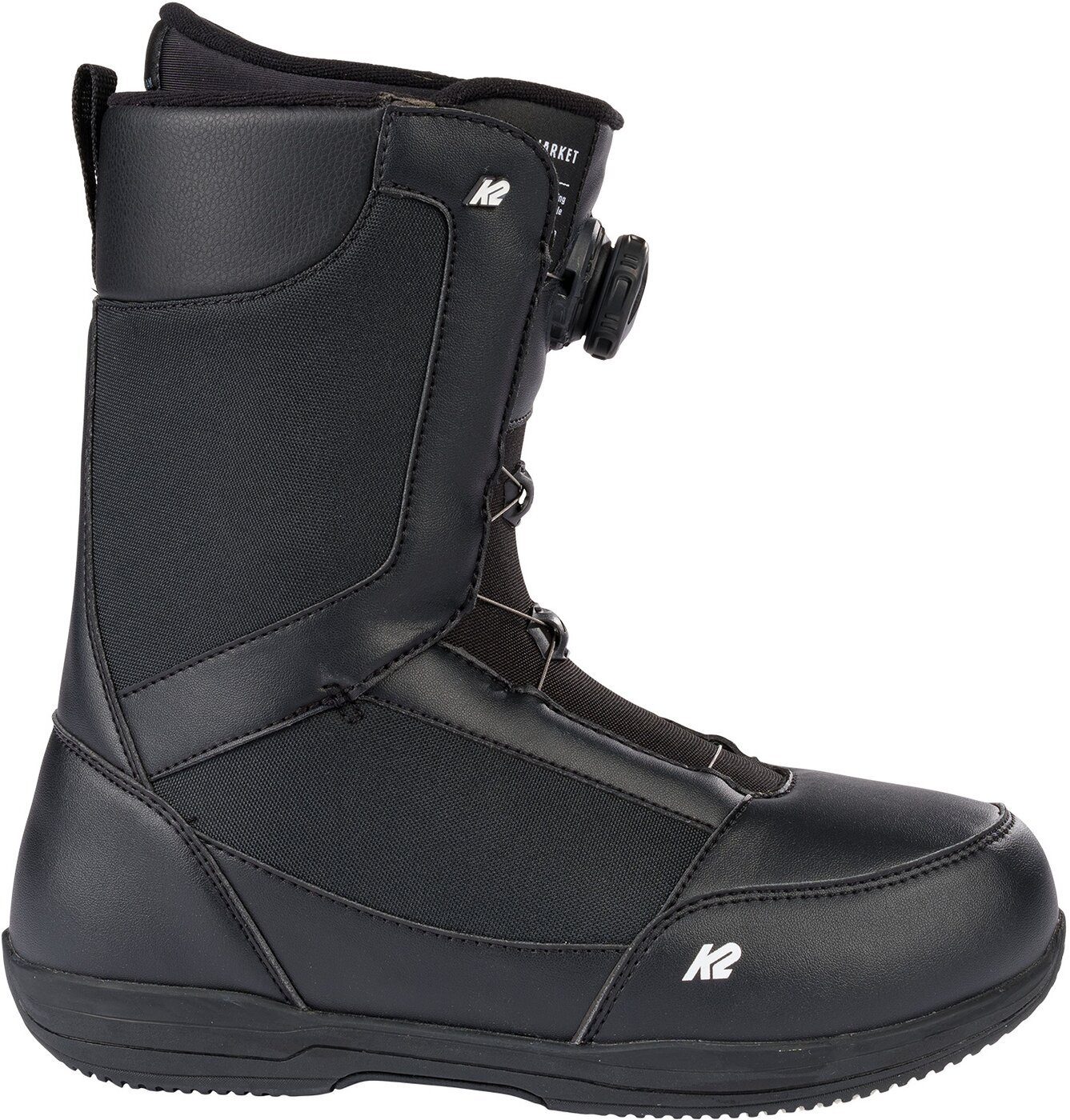 Mache den nächsten Schritt in deiner Entwicklung mit dem Market Boot, entwickelt für ganztägige Wärme, Komfort und Leistungssteigerung. Das bewährte M1 Coiler BOA® Fit System verwendet BOA®-Schnürsenkel aus rostfreiem Stahl, um den Aussenschuh festzuziehen und schnelles An- und Ausziehen auf dem Parkplatz zu ermöglichen. Dieses Schnürsystem arbeitet harmonisch mit einem gelenkigen Schaft zusammen, um sicherzustellen, dass der Boot eine gleichmäßige Flexibilität bietet, die das Kurvenfahren erleichtert. Das Fast-In Liner-Schnürsystem umschließt den Innenschuh eng an dein unteres Bein und deinen Fuß, und der Comfort Foam EVA Innenschuh wird sich schnell der individuellen Form deiner Füße anpassen. Der Innenschuh im K2 Market Snowboard-Boot verfügt auch über interne J-Bars, die entwickelt wurden, um deine Knöchel zu ummanteln und zu unterstützen, um die individuelle Passform zu verbessern. Das i-Tüpfelchen ist unsere Low Pro OS Laufsohle, die aus einer strapazierfähigen und griffigen Gummimischung gefertigt ist, die dich auch auf den Füßen hält, wenn du über gefrorene Parkplätze läufst oder deine erste Line hikest. Durchdacht gestaltet, ist der Market Boot darauf ausgelegt, dir auf dem Berg den nächsten Schritt zu ermöglichen.