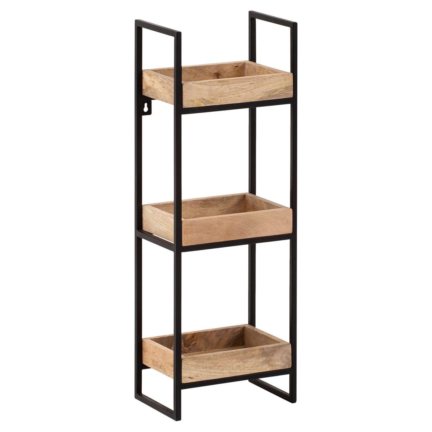 Material | Ablageflächen: Mango Massivholz (mit Klarlack beschichtet) Rahmen: pulverbeschichtetes Eisen |