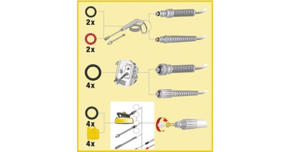 Das Kärcher Ersatz-O-Ring-Set ist zum einfachen Austausch und Wechsel von O-Ringen und Sicherheitsstopfen an Hochdruckreiniger-Zubehör.