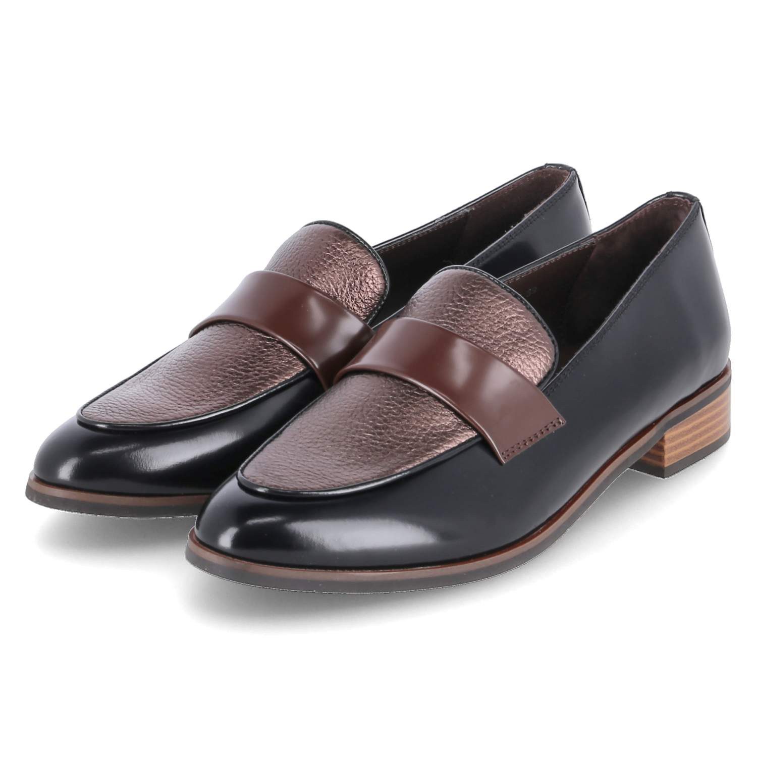 Die schwarzen Kaerlek Damen Slipper aus Glattleder vereinen Eleganz und Komfort in einem zeitlosen Design. Der dekorative Zierriemen über dem Spann und die stilvollen Akzente in Bronze verleihen den Loafers einen raffinierten Look. Die verstärkte Ferse sorgt für zusätzliche Stabilität und Langlebigkeit.