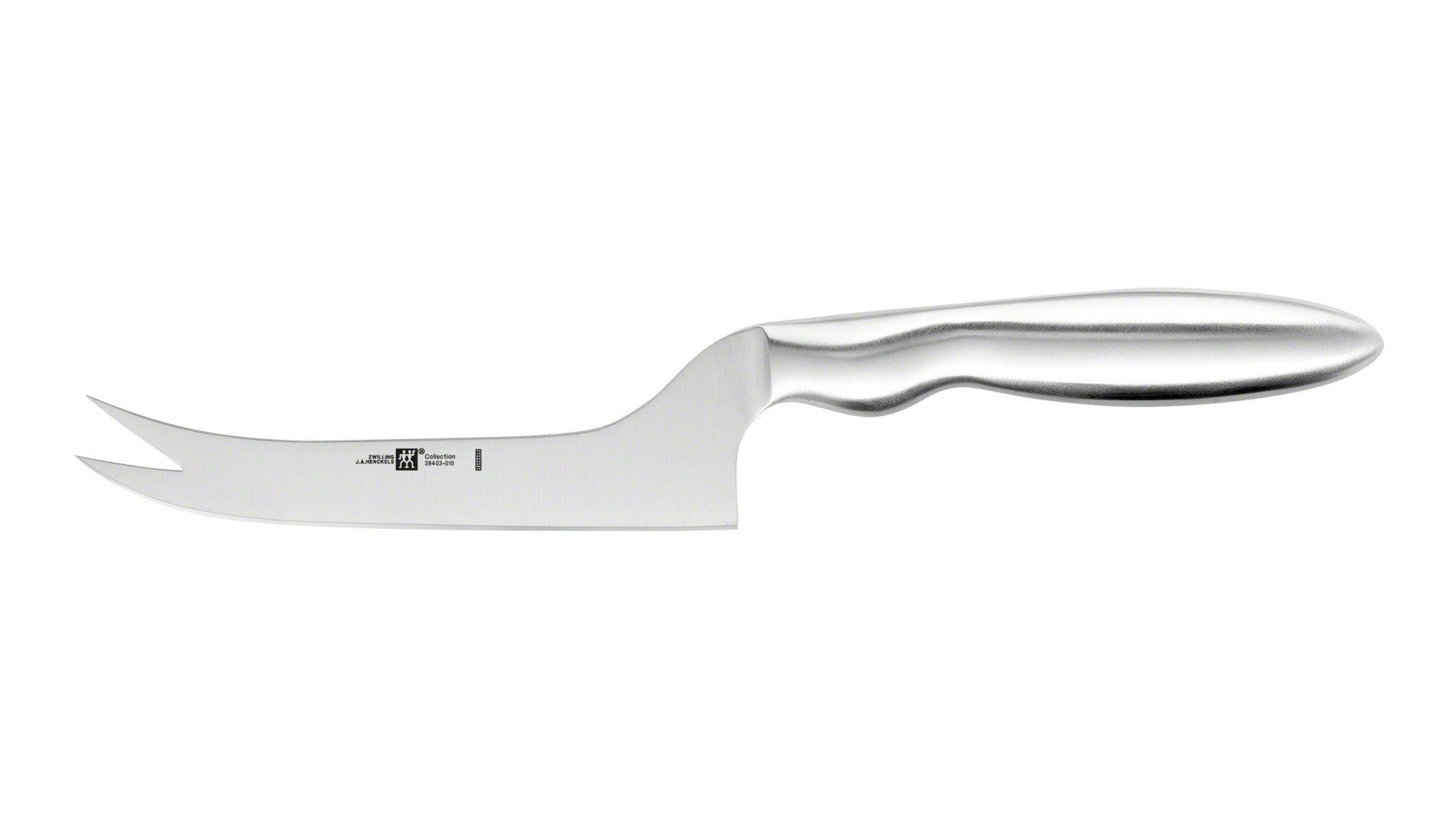 ZWILLING J.A. HENCKELS ZWILLING® Collection Messer Käsemesser mit Gabelspitze Das schöne Käsemesser mit Gabelspitze aus der Serie ZWILLING® Collection macht es Ihnen und Ihren Gästen leicht, sich am Käse zu bedienen. Es besitzt eine speziell entwickelte Klinge, die sich gleichermaßen zum Schneiden und Anheben des Käses eignet. Mit diesem Messer genießen Sie auch in einer großen Runde guten Käse. Der Griff des Käsemessers wurde aus hochwertigem Edelstahl gefertigt. Seine leicht gewellte Form an der Unterseite macht die Benutzung des Messers komfortabel. Die Klinge besteht aus rostfreiem Stahl. Sie ist unten gerade, sodass Sie dieses Käsemesser am besten zum Schneiden von Schnittkäse verwenden. Die praktische Gabelspitze besitzt zwei Zinken, mit denen Sie den zuvor geschnittenen Käse mühelos von der Käseplatte nehmen. Es ist daher nicht nötig, den Käse oder die Platte mit den Händen zu berühren. Mit diesem Käsemesser von ZWILLING®, das gleichermaßen durch seine Funktionalität und sein schönes Design überzeugt, sind Sie auch bei einer großen Feierlichkeit bestens ausgestattet. Sicheres und präzises Arbeiten dank scharfer Klinge Ergonomisch geformter Griff für eine angenehme Handhabung Lange Haltbarkeit dank der Применитьung aus hochwertigem, rostfreiem Edelstahl Zwei praktische Gabelspitzen zum Anheben des geschnittenen Käses
