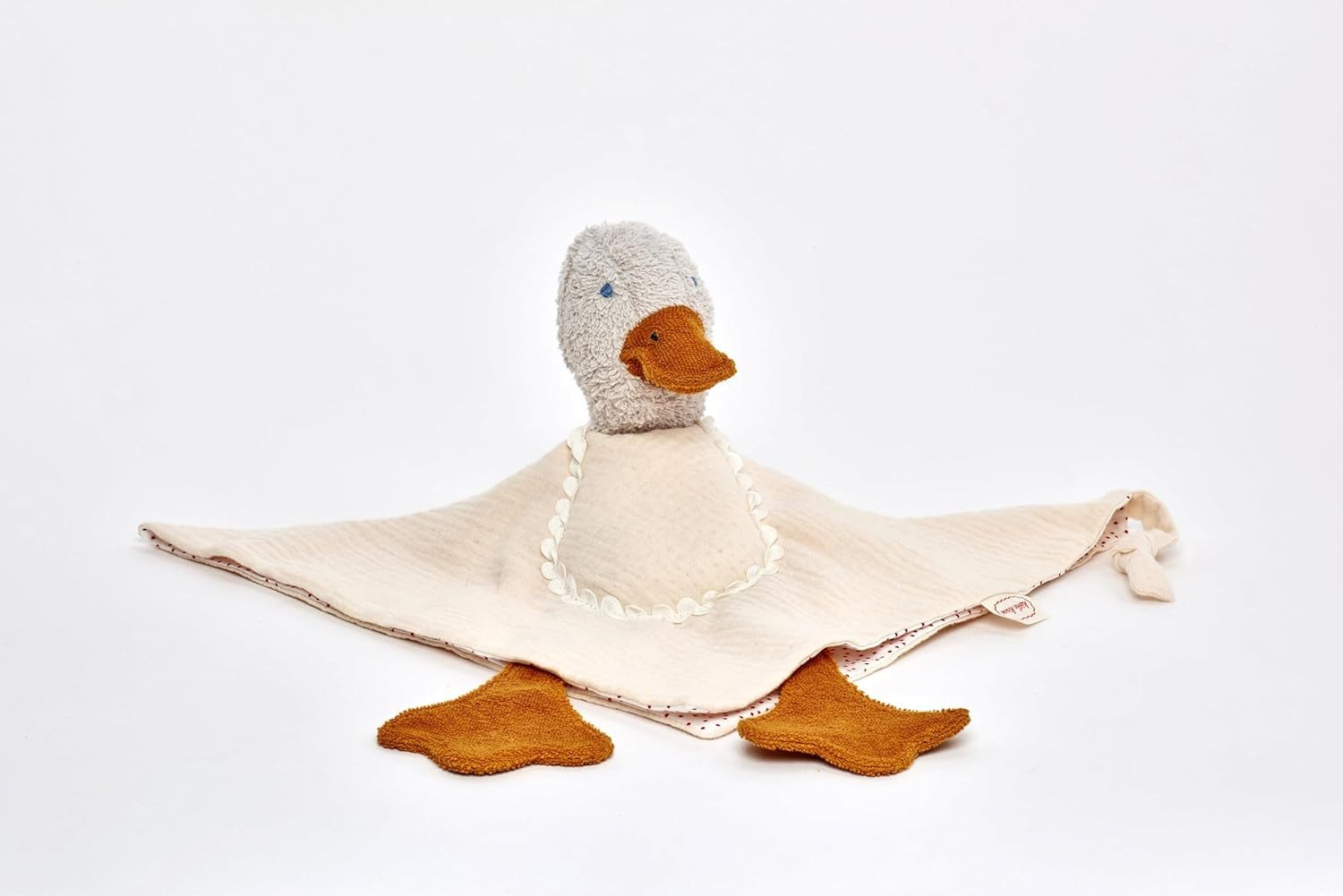 Käthe Kruse Schmusetuch Ente Eli Maße: 35 cm Von Geburt an Oberstoff: 100 % Baumwolle Füllung: 100 % Polyesterwatte waschbar 30 Grad ELI Entes Kopf aus Baumwollfrottee schaut leicht zur Seite, sodass sie sich noch besser anschmiegen kann. An der Seite des Schnuffeltuchs aus weichem Musselin befindet sich ein Schnürchen für den Schnuller. Elis große Füße aus Baumwollpico laden zum Festhalten und Spielen ein. Das Tuch ist gedoppelt mit einem schönen Punkte-Print. Gut zu wissen: .