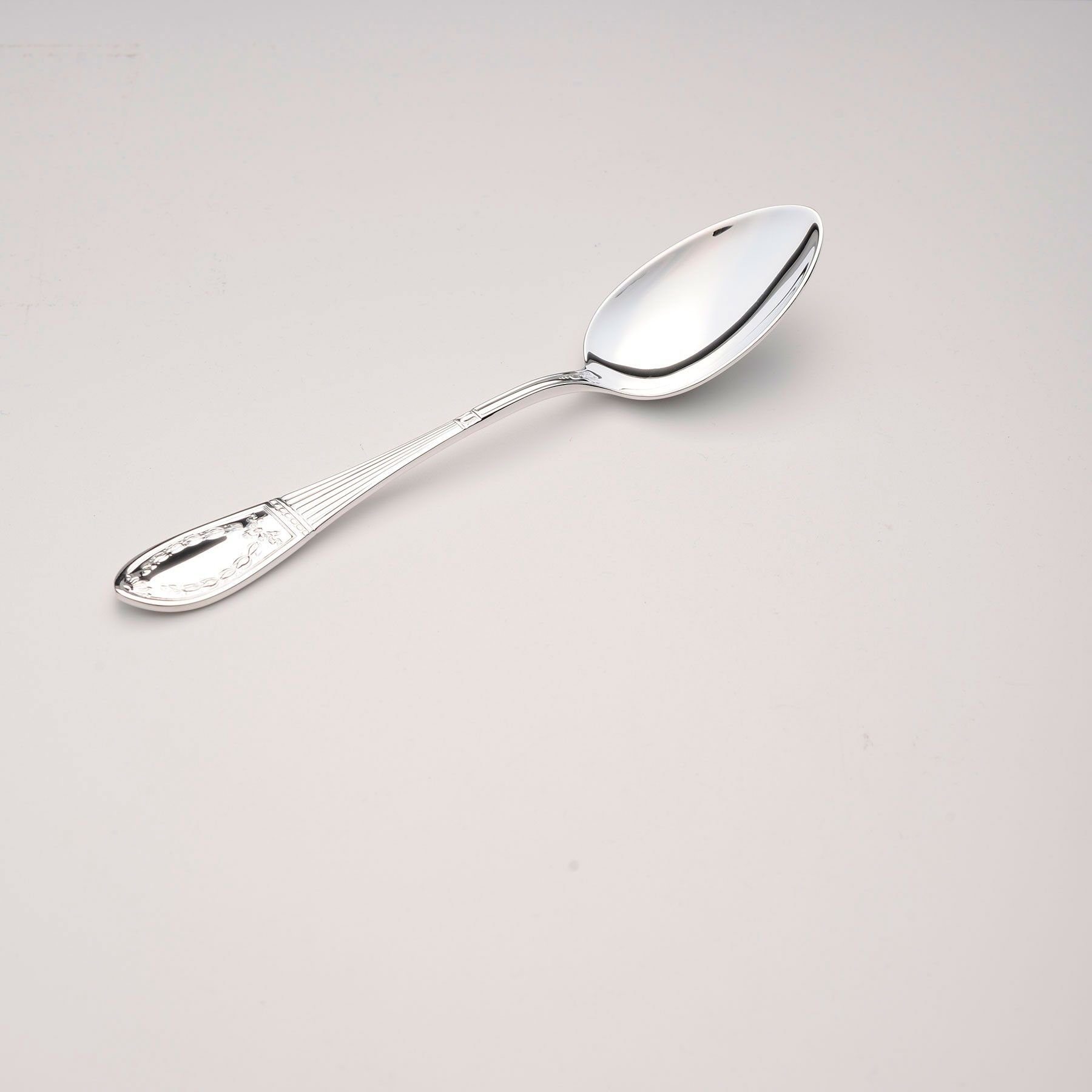 Wilkens Menülöffel Straßburger Empire in 925 Sterlingsilber Hochwertiger Menülöffel von WILKENS in Sterling Silber - Muster Straßburger Empire. Впередe Besteck Teile erhältlich für einen stilvoll gedeckten Tisch! Auf Wunsch mit WILKENS Meister Gravur (aufpreispflichtig). 1870 erinnerte man sich in Bremen an die Epoche des Empire aus der Zeit Napoleon I. und ließ sie in einem exquisiten Besteckentwurf wieder aufleben: WILKENS Strassburger Empire. Die Ornamentik stellt allerhöchste Anforderungen an das handwerkliche Geschick. Vorder- und Rückseiten der Bestecke sind mit fein gearbeiteten Mustern ausgestattet. Die künstlerische Durchformung und die handwerkliche Präzision bestimmen sowohl den harmonischen Gesamteindruck als auch die Schönheit im Detail. Die tägliche Nutzung Ihres WILKENS Silberbesteck verhindert ein Anlaufen (oxidieren) der Besteckteile. WILKENS Silberbestecke und versilberte Bestecke dürfen gerne im Geschirrspüler gereinigt werden. Für die besondere Silberpflege empfehlen wir die Pflegeprodukte aus dem Pflegemittelsortiment von Hagerty. So bewahren Sie den Glanz und die Freude an Ihrem WILKENS Tafelsilber.