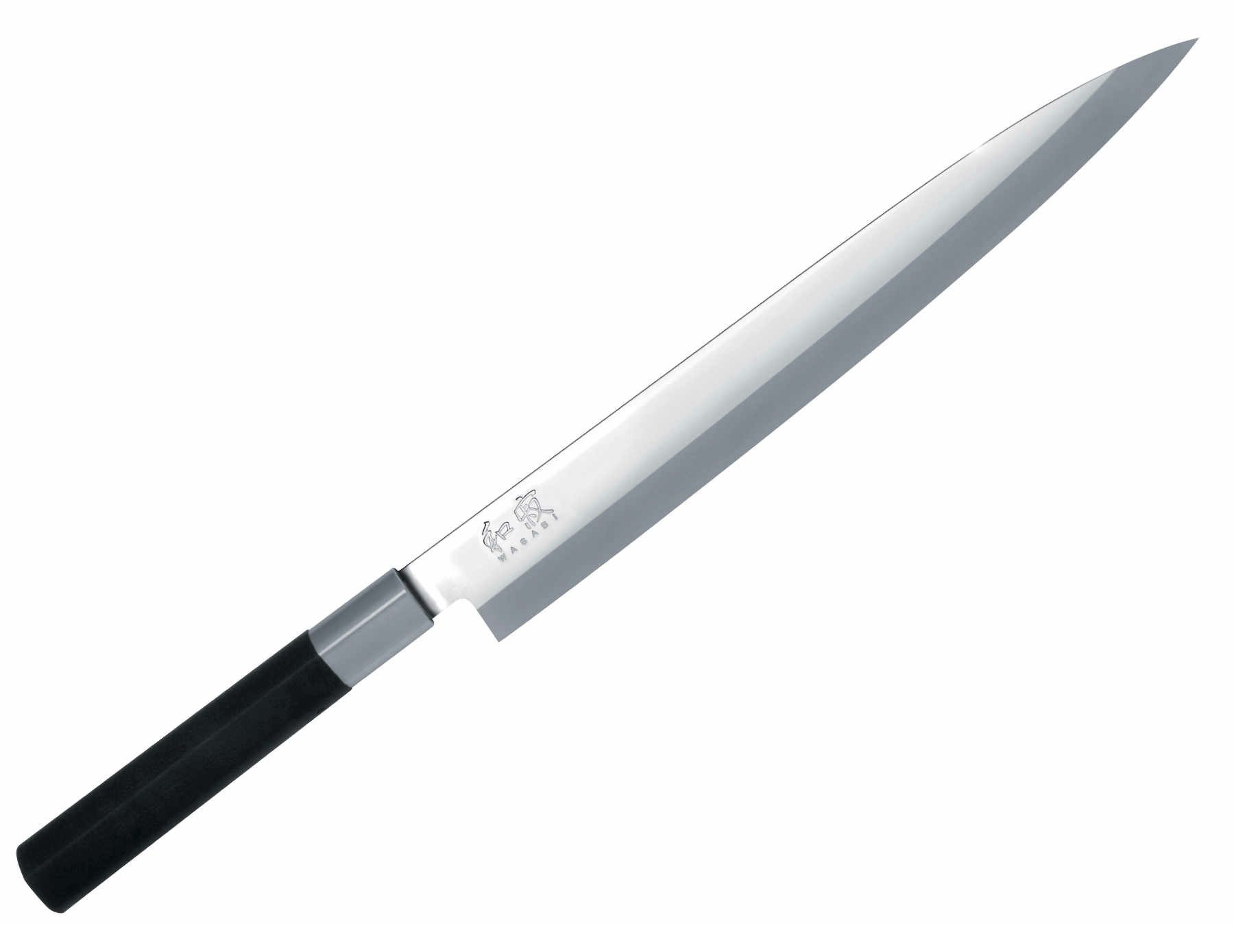 Das KAI Wasabi Black 6724Y Yanagiba vereint ästhetische Eleganz mit praktischer Funktionalität. Die 24 cm lange, polierte Edelstahlklinge ist einseitig geschliffen und bietet mit einer Härte von 58 HRC langanhaltende Schärfe für präzise Schnitte. Der ergonomische Griff aus Polypropylen, verstärkt mit antibakteriellem Bambuspuder, ist speziell für Rechtshänder konzipiert und gewährleistet höchste Hygiene. Die KAI Wasabi Black Serie, gefertigt in Japan, bringt fernöstliches Flair in Ihre Küche und eignet sich sowohl für den ambitionierten Hobbykoch als auch für den Profi. Ideal für vielfältige Anwendungen, erfüllt dieses Messer höchste Ansprüche an Qualität und Design.