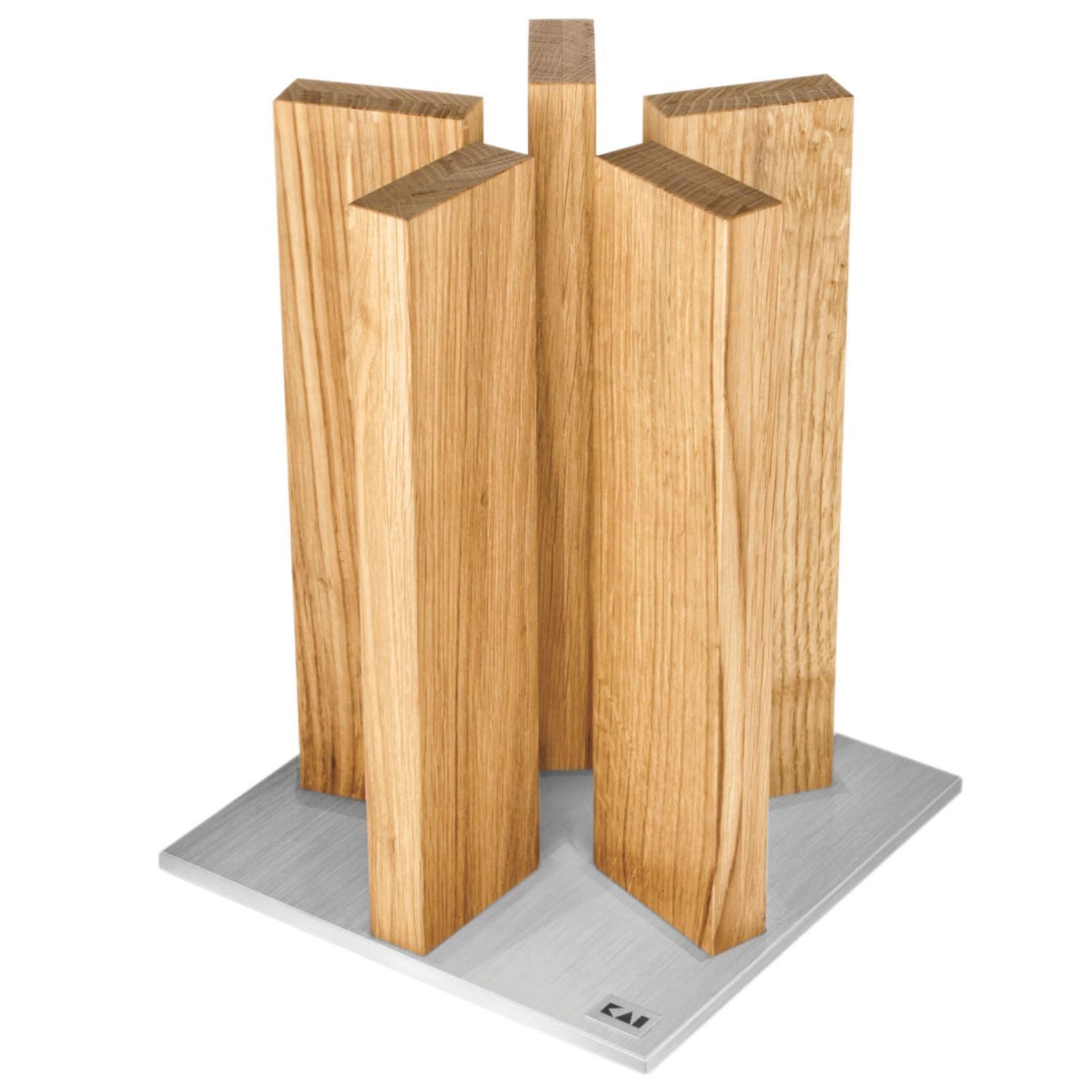 Der magnetische Messerblock Stonehenge von Kai wird auf handwerklich höchstem Niveau gefertigt. Dabei wird ein besonderes Augenmerk auf die Schönheit und Charaktervielfalt des verwendeten Holzes und einen nachhaltigen Umgang mit der Natur gelegt. Durch die asymmetrische Anordnung der magnetischen Holzsäulen können hochwertige Kochmesser optimal präsentiert werden. Dabei bietet Stonehenge Platz für bis zu zehn Messer. Die hochwertigen Kochmesser werden so nicht nur schonend aufbewahrt, sie sind auch immer griffbereit und sichtbar. Der Messerblock besteht aus Edelstahl und Eichenholz, er ist 28 cm hoch und 21 cm breit.