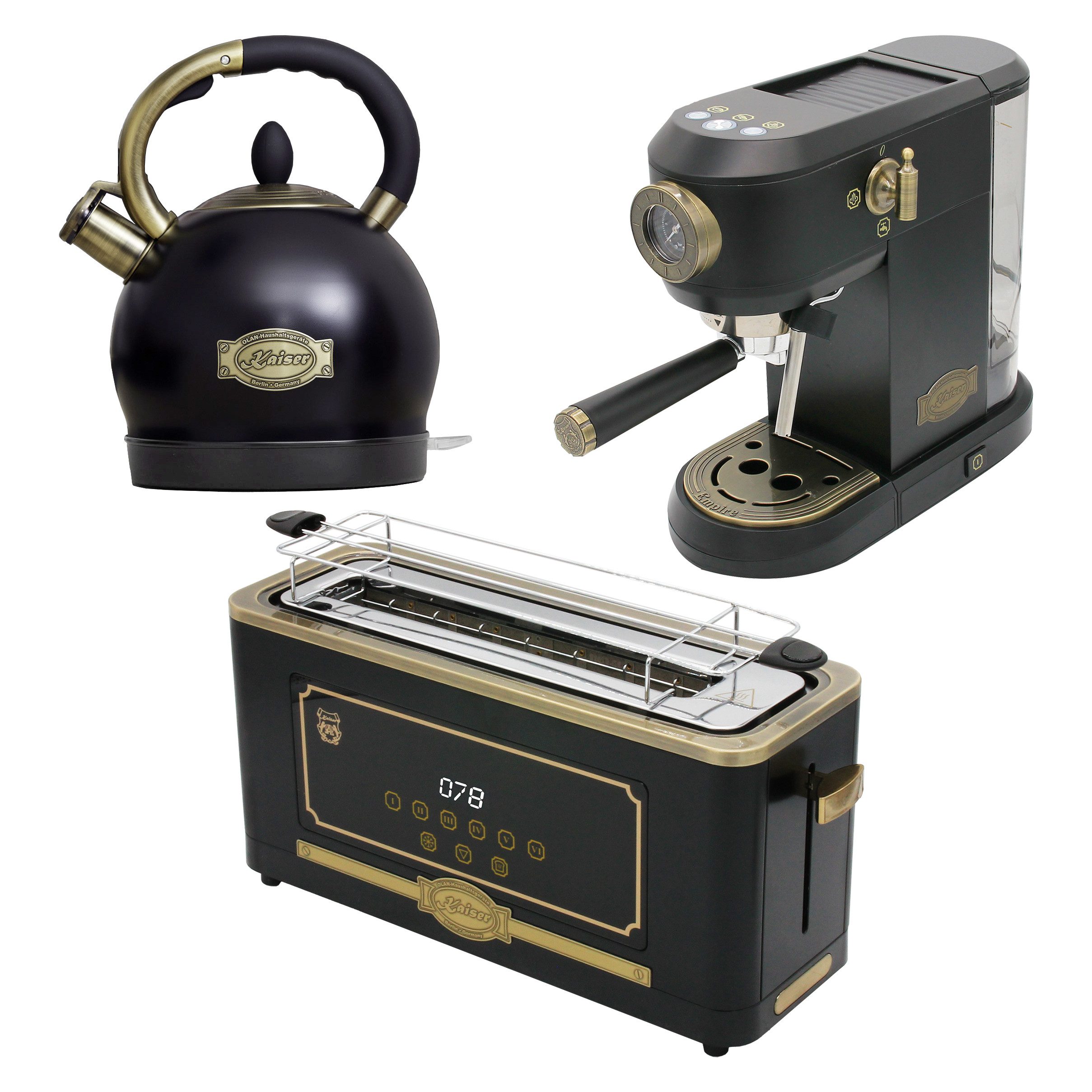 Kaiser Küchengeräte Espressomaschine, Siebträger-Espressomaschine,19 bar+ Retro Wasserkocher+Retro-Toaster