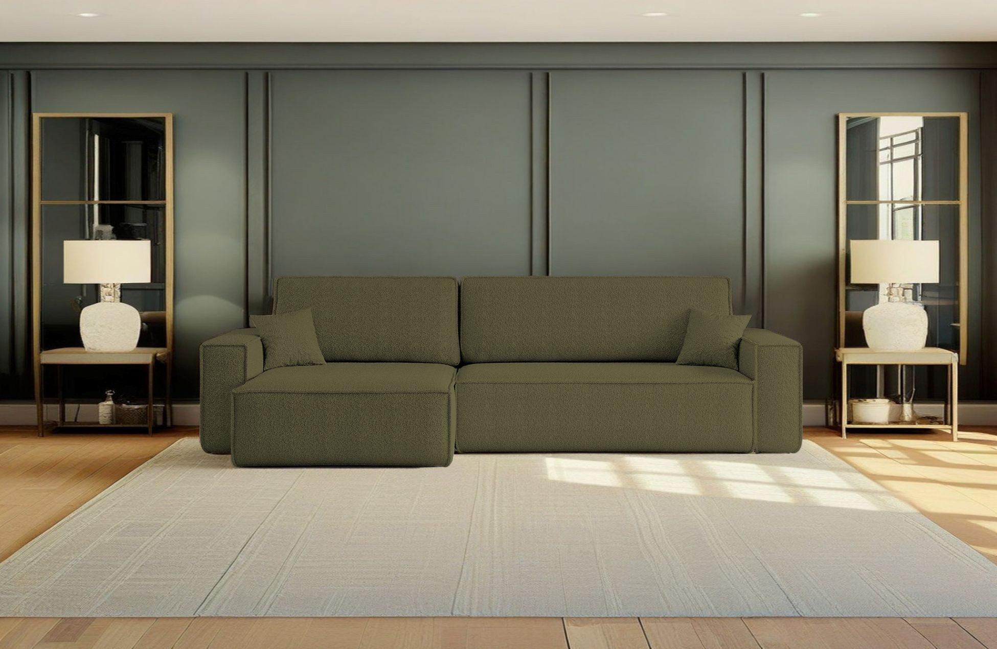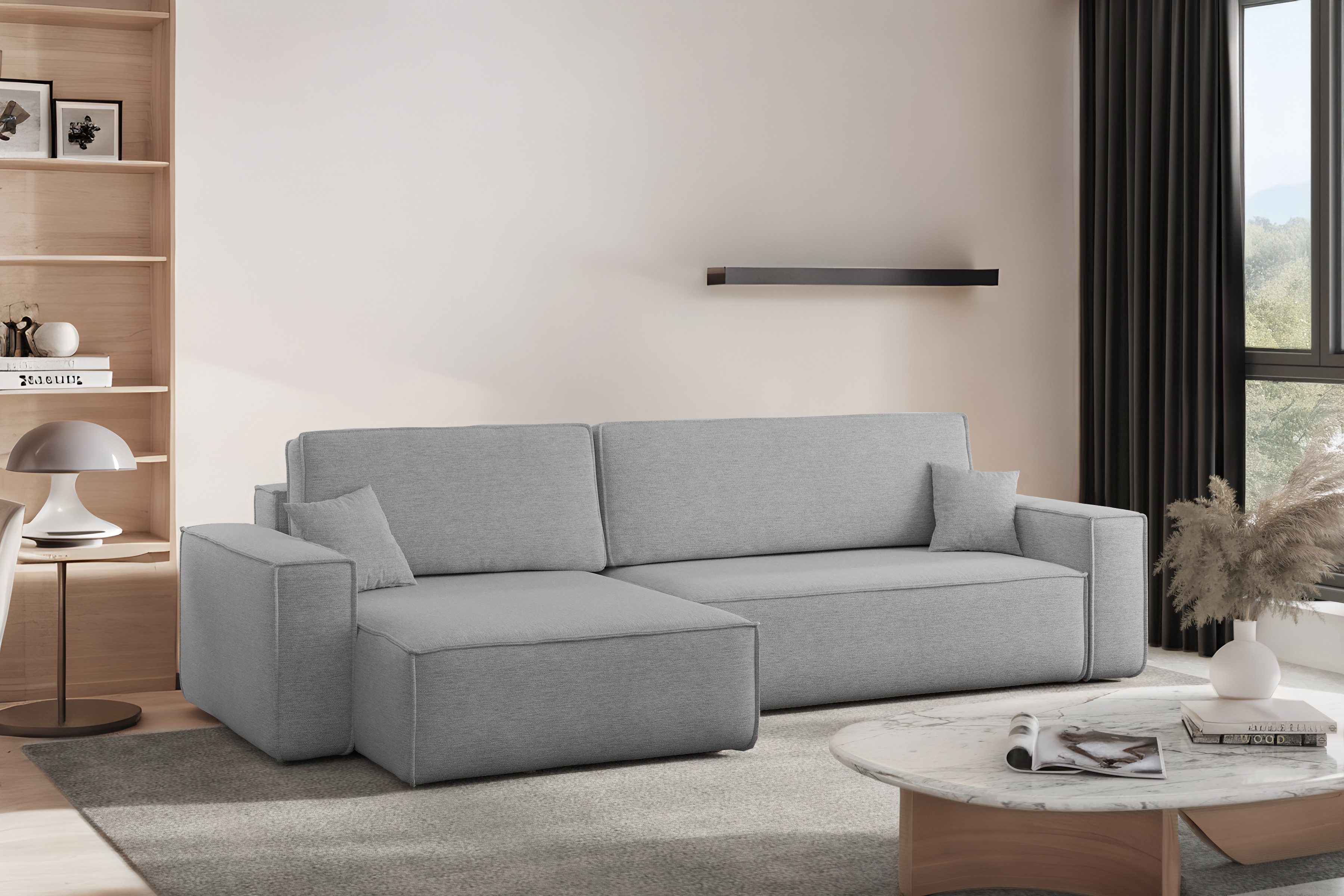 Entdecken Sie die perfekte Kombination aus Stil und Funktionalität mit unserem Ecksofa BEST XL, das jedes Interieur verwandeln wird. Dieses elegante Möbelstück wurde unter Berücksichtigung von Komfort, Stil und Funktionalität entworfen. Unser Ecksofa ist mit einer Schlaffunktion ausgestattet, die es schnell in ein geräumiges Bett verwandelt. Eine ideale Wahl für Filmabende oder als Zusatzbett für unerwartete Gäste. Unter der Sitzfläche des Ecksofas befindet sich ein Bettzeugbehälter, der zusätzlichen Stauraum bietet, was besonders in kleineren Räumen nützlich ist. Damit Sie sich entspannen können, ist das Ecksofa mit zwei Rückenkissen und zwei kleinen Kissen ausgestattet, um Ihnen maximalen Komfort und Halt zu bieten. Diese weichen Akzente tragen nicht nur zu Ihrem Komfort bei, sondern auch zum Charme der gesamten Einrichtung. Ob Sie sich nach einem anstrengenden Arbeitstag entspannen oder eine Party für Familie und Freunde veranstalten, dieses Ecksofa bietet Komfort, Stil und Funktionalität und erfüllt alle Anforderungen des modernen Lebens. Sehen Sie selbst, wie dieses Ecksofa Ihre Einrichtung in einen Ort voller Stil und Komfort verwandeln kann.