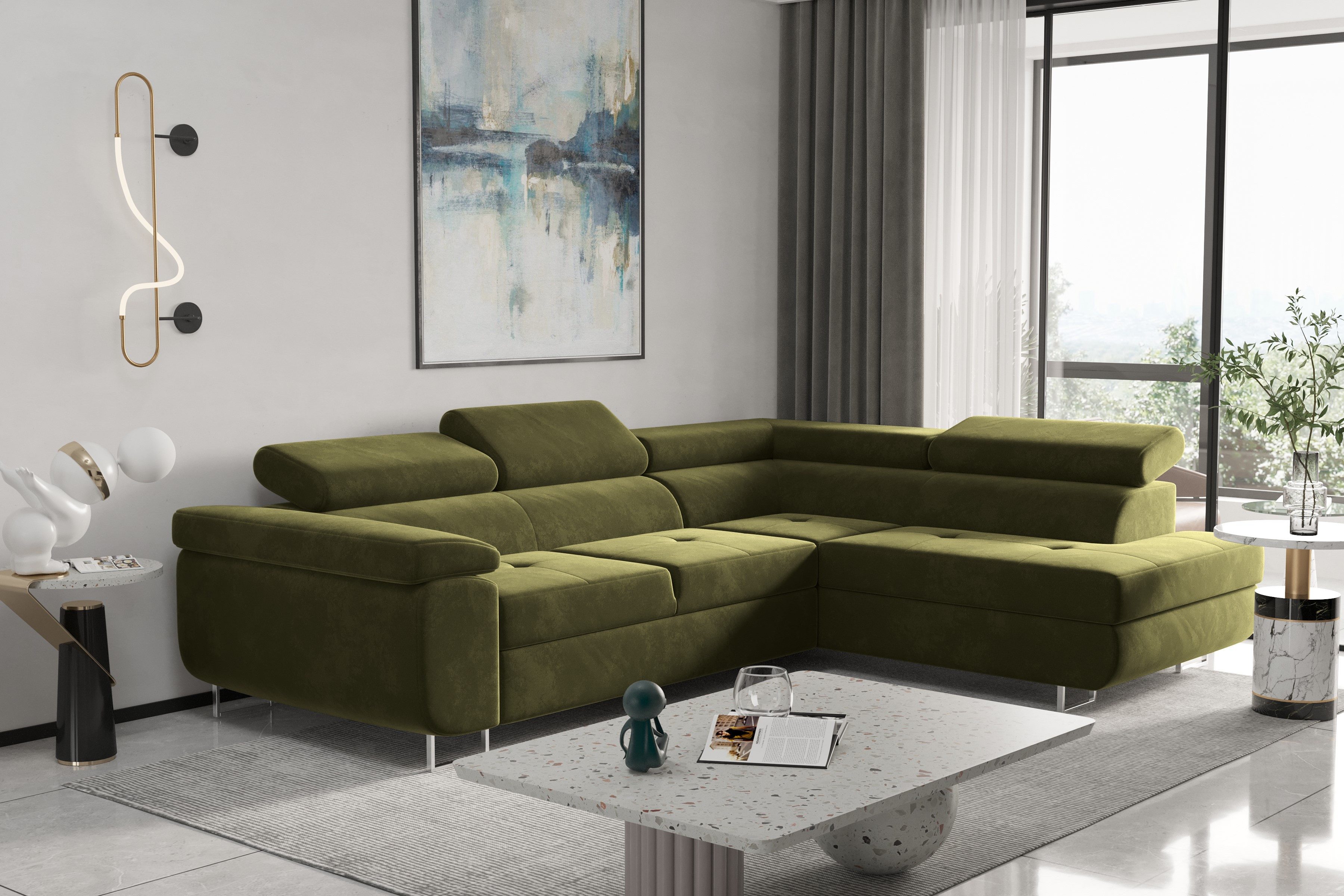 Das Ecksofa mit Schlaffunktion und Bettkasten, bekannt als Eckcouch ATOM, bietet Ihnen eine perfekte Kombination aus Stil, Komfort und Funktionalität. Dieses schlaf Ecksofa ist ideal für moderne Wohnräume, in denen Flexibilität und Platzersparnis wichtig sind. Die hochwertige Polsterung und der robuste Rahmen sorgen für langanhaltenden Komfort und Haltbarkeit. Mit seiner integrierten Schlaffunktion lässt sich die Eckcouch schnell und einfach in ein bequemes Bett verwandeln, ideal für Übernachtungsgäste oder gemütliche Fernsehabende. Der geräumige Bettkasten bietet zusätzlichen Stauraum für Bettwäsche, Kissen und Decken, wodurch Ihr Wohnzimmer stets ordentlich und aufgeräumt bleibt.
