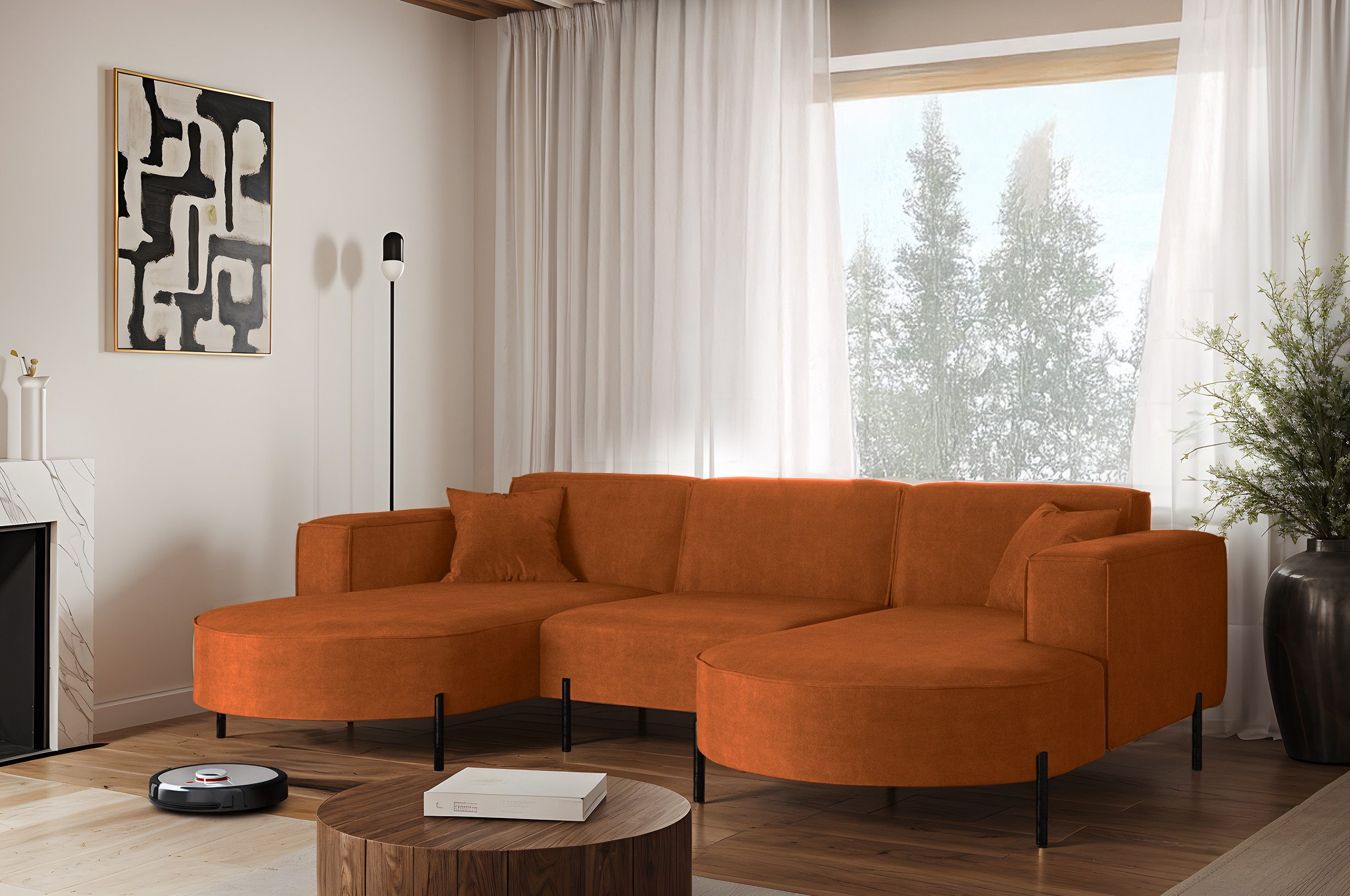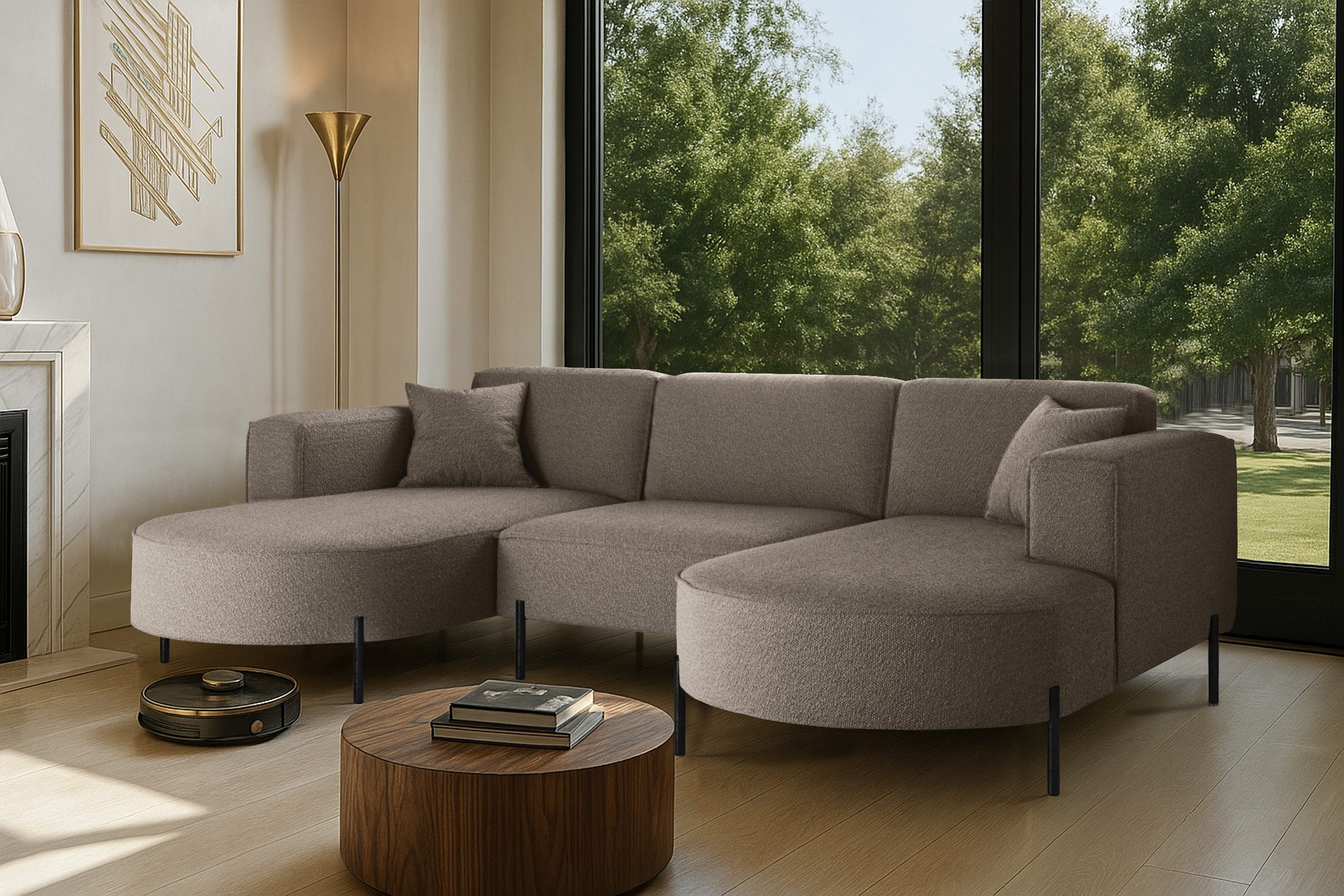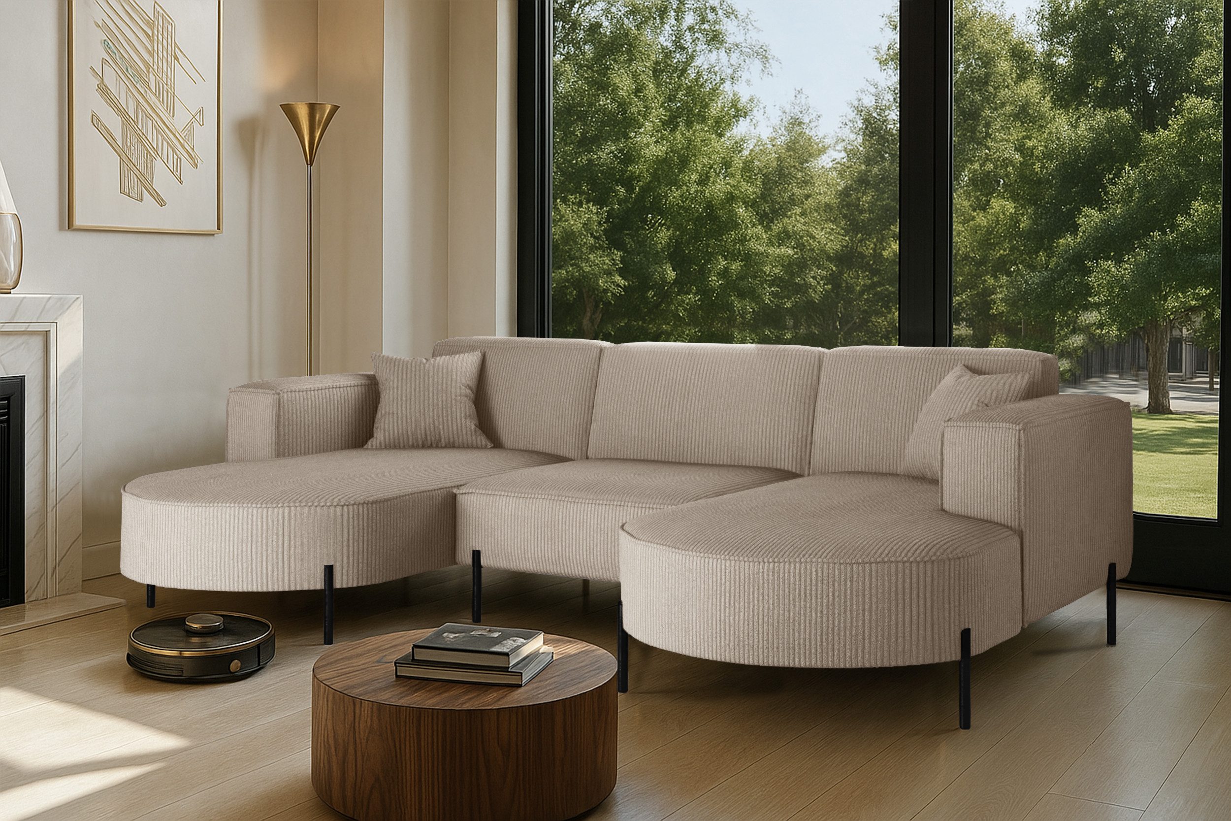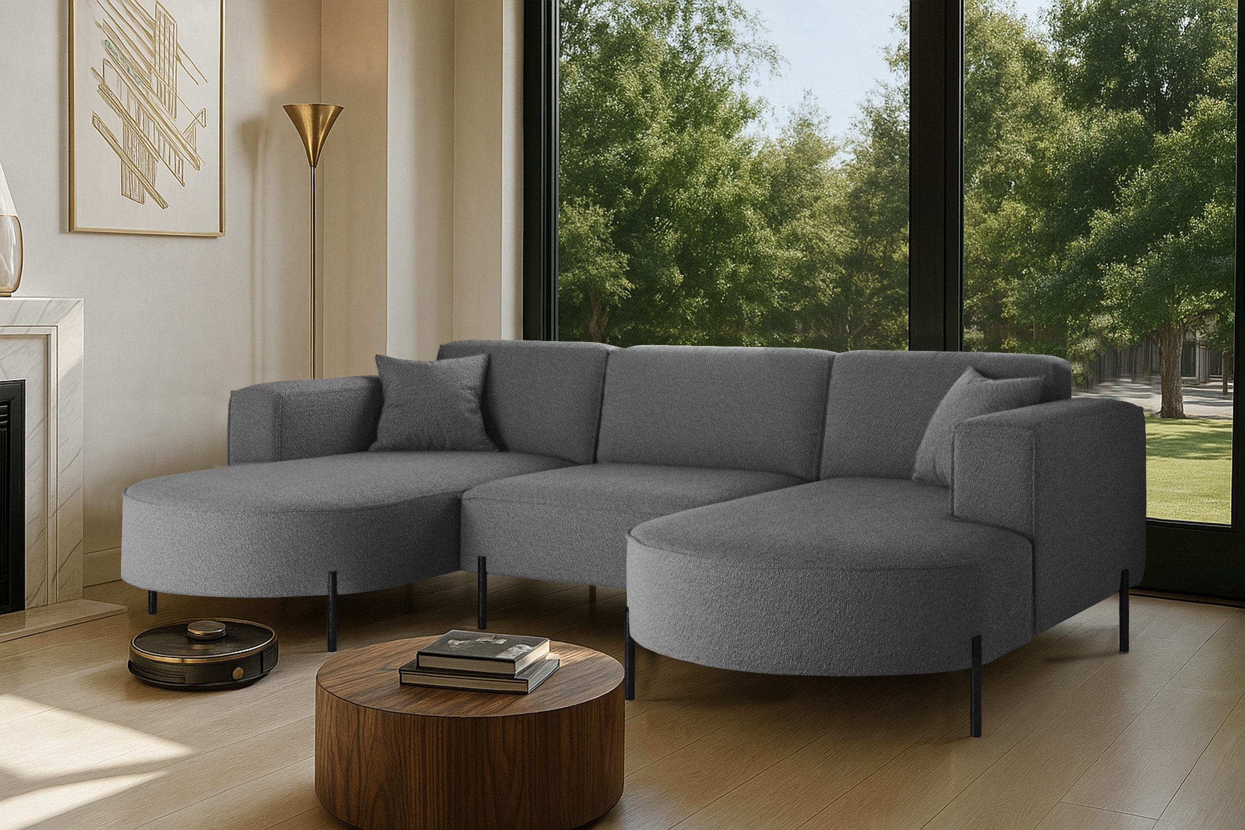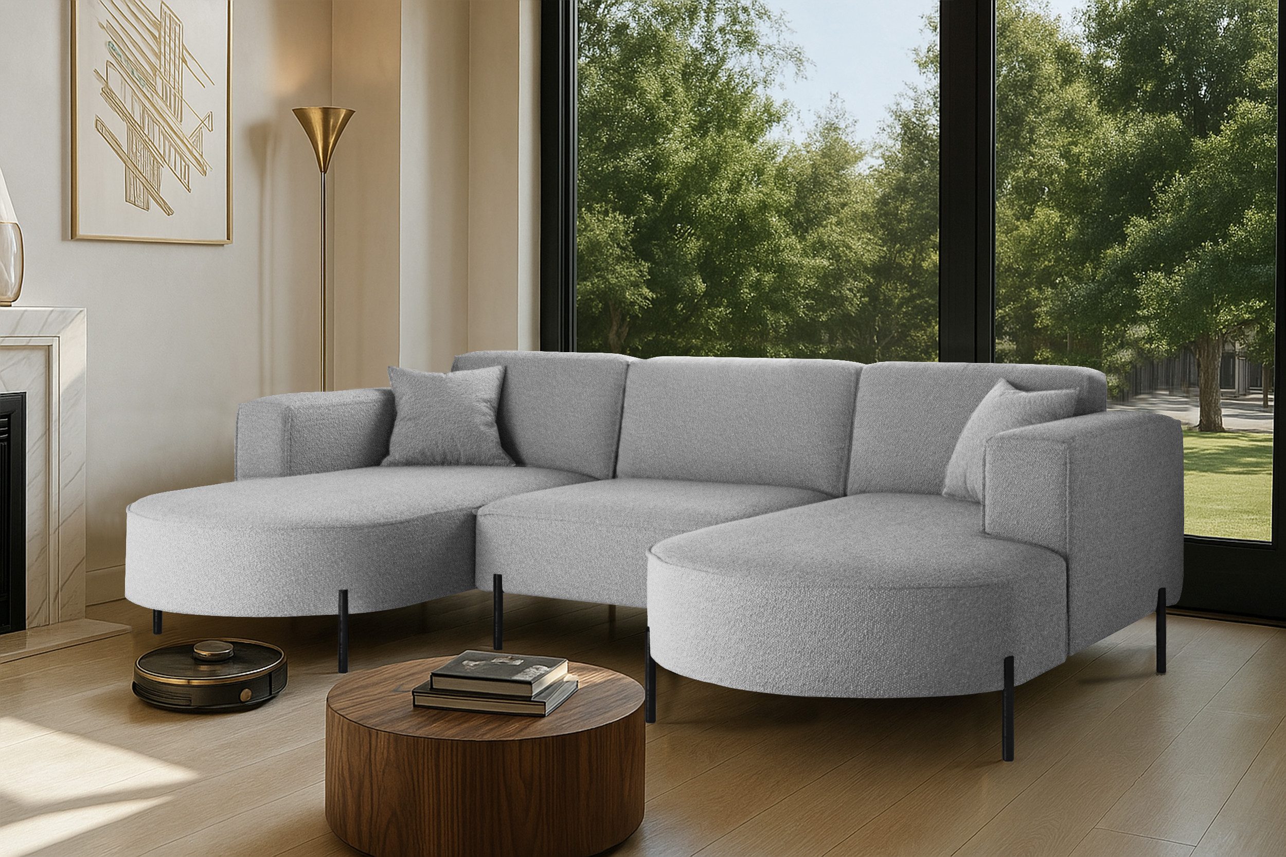 Das stilvolle Ecksofa MODENA U Rein vereint auf perfekte Weise Funktionalität, Eleganz und Komfort. Jedes Detail dieses Möbelstücks wurde sorgfältig durchdacht, um maximale Zufriedenheit bei der Nutzung zu gewährleisten. Dank der massiven Holzkonstruktion ist das Ecksofa stabil und langlebig, was sich in seiner langen Lebensdauer widerspiegelt. Das zeitlose Design macht das Sofa zu einem echten Blickfang, der sich harmonisch in verschiedene Einrichtungsstile einfügt – nicht nur im Wohnzimmer. Zusätzlich ist es mit Metallfüßen mit ausgestattet, unter denen problemlos ein Saugroboter Platz findet. Dadurch lassen sich Staub und Schmutz mühelos entfernen, ohne dass Sie eingreifen müssen.