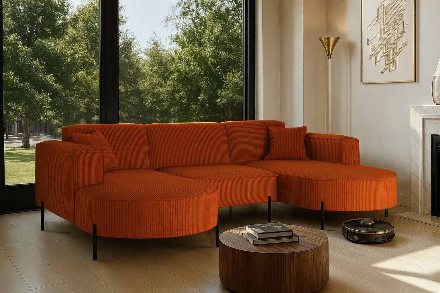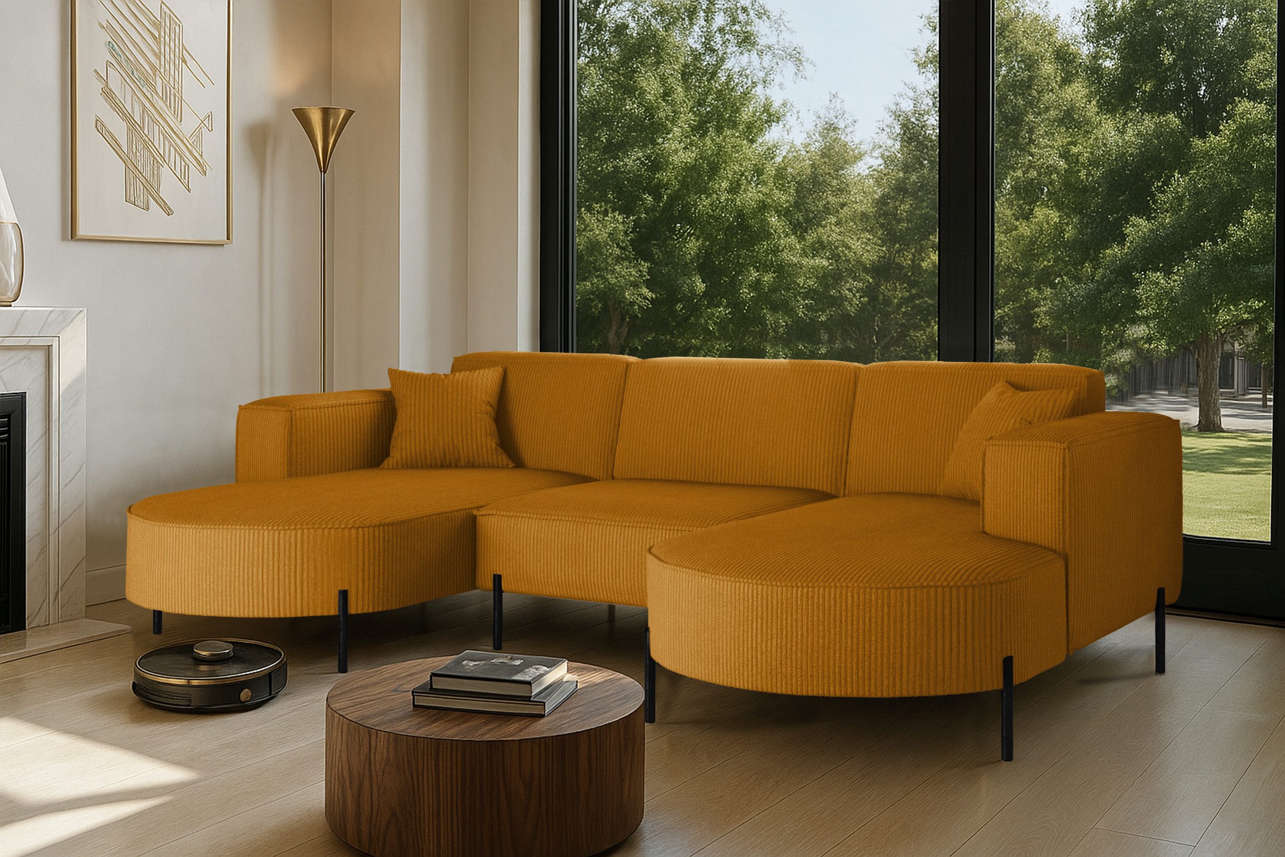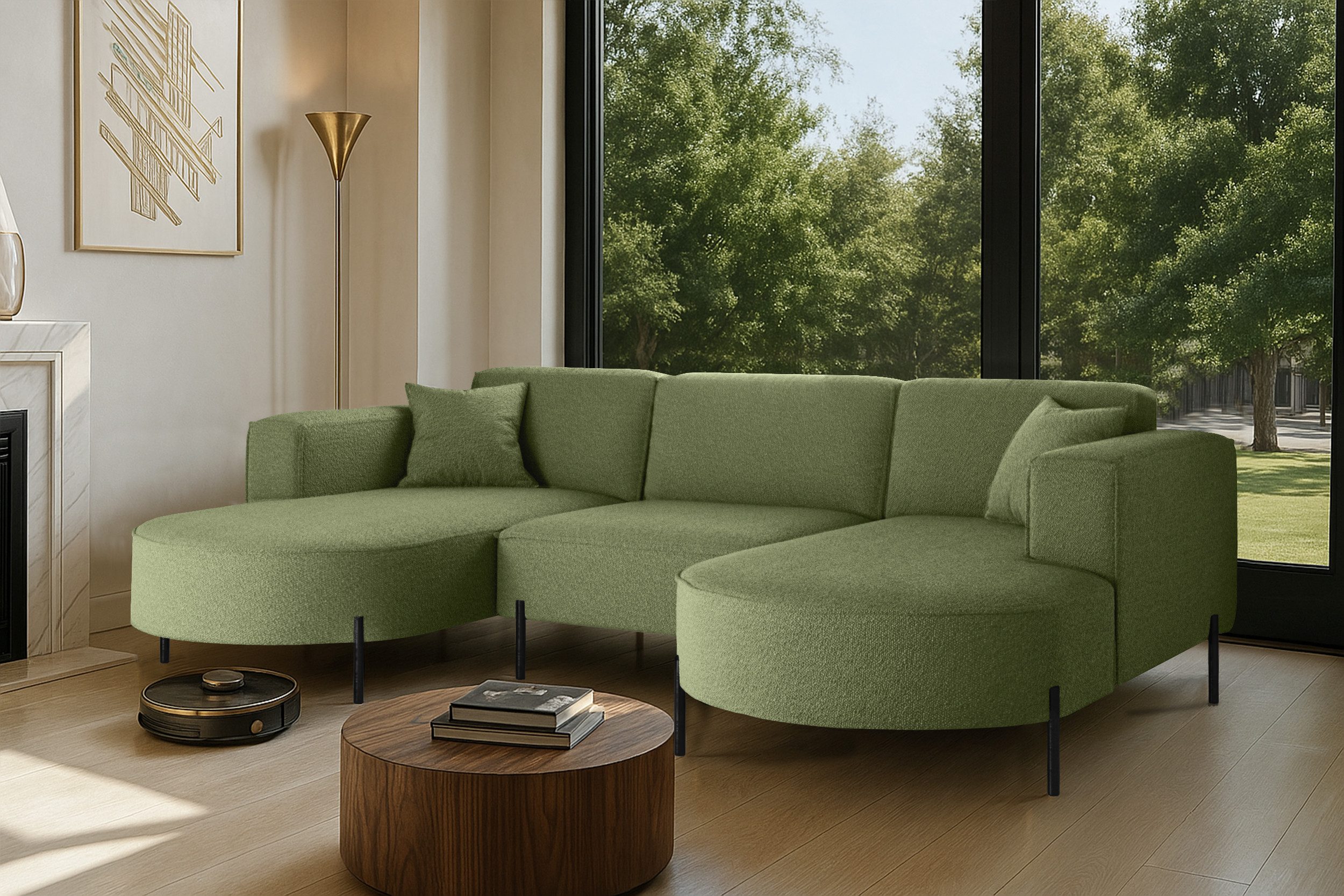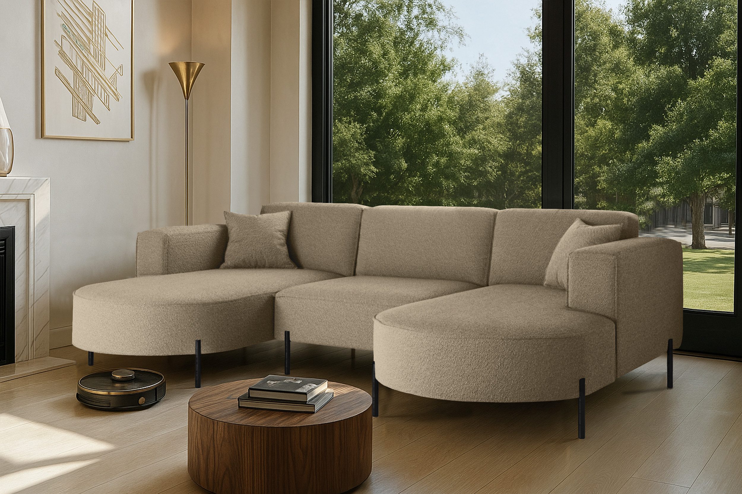 Das stilvolle Ecksofa MODENA U Rein vereint auf perfekte Weise Funktionalität, Eleganz und Komfort. Jedes Detail dieses Möbelstücks wurde sorgfältig durchdacht, um maximale Zufriedenheit bei der Nutzung zu gewährleisten. Dank der massiven Holzkonstruktion ist das Ecksofa stabil und langlebig, was sich in seiner langen Lebensdauer widerspiegelt. Das zeitlose Design macht das Sofa zu einem echten Blickfang, der sich harmonisch in verschiedene Einrichtungsstile einfügt – nicht nur im Wohnzimmer. Zusätzlich ist es mit Metallfüßen mit ausgestattet, unter denen problemlos ein Saugroboter Platz findet. Dadurch lassen sich Staub und Schmutz mühelos entfernen, ohne dass Sie eingreifen müssen.