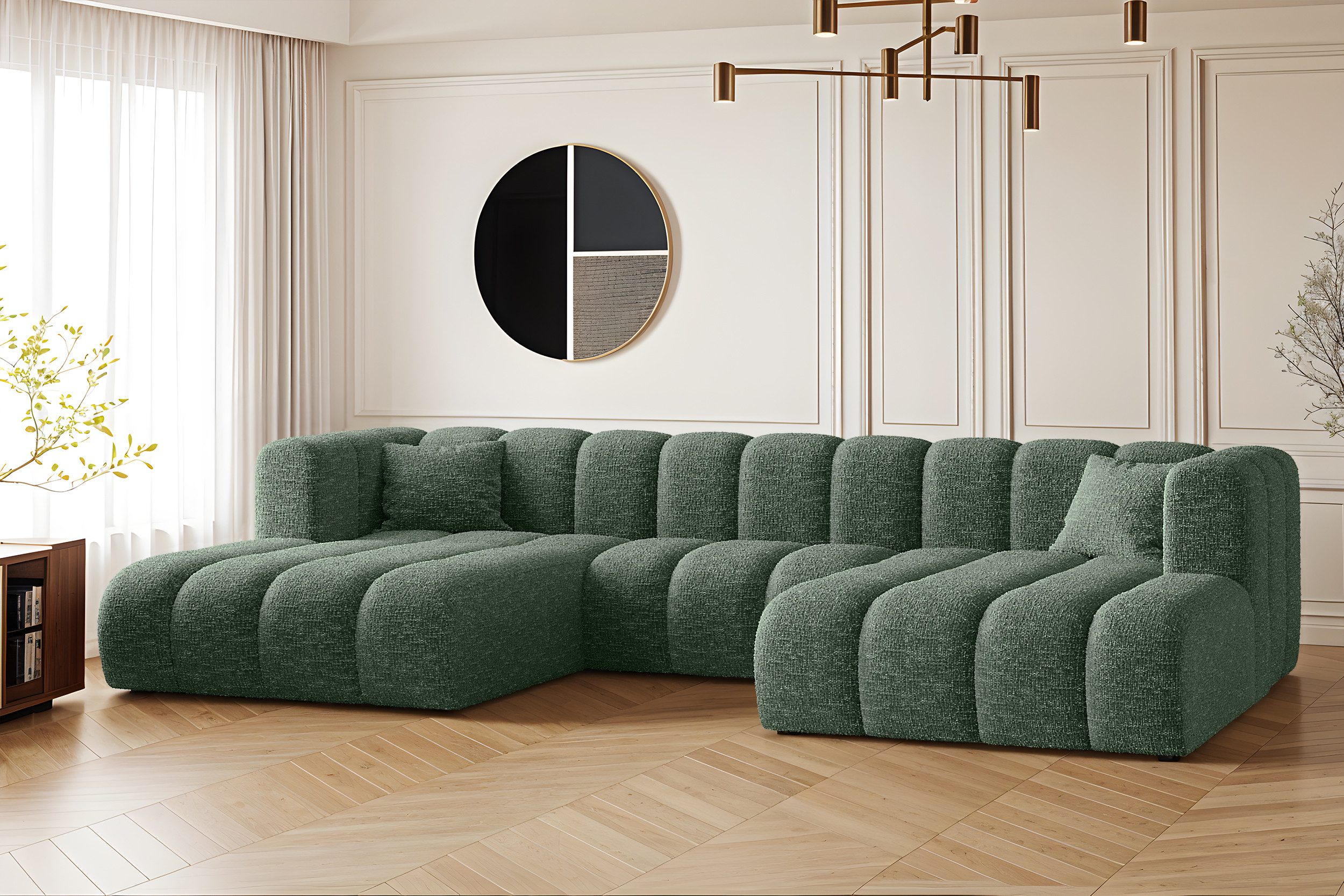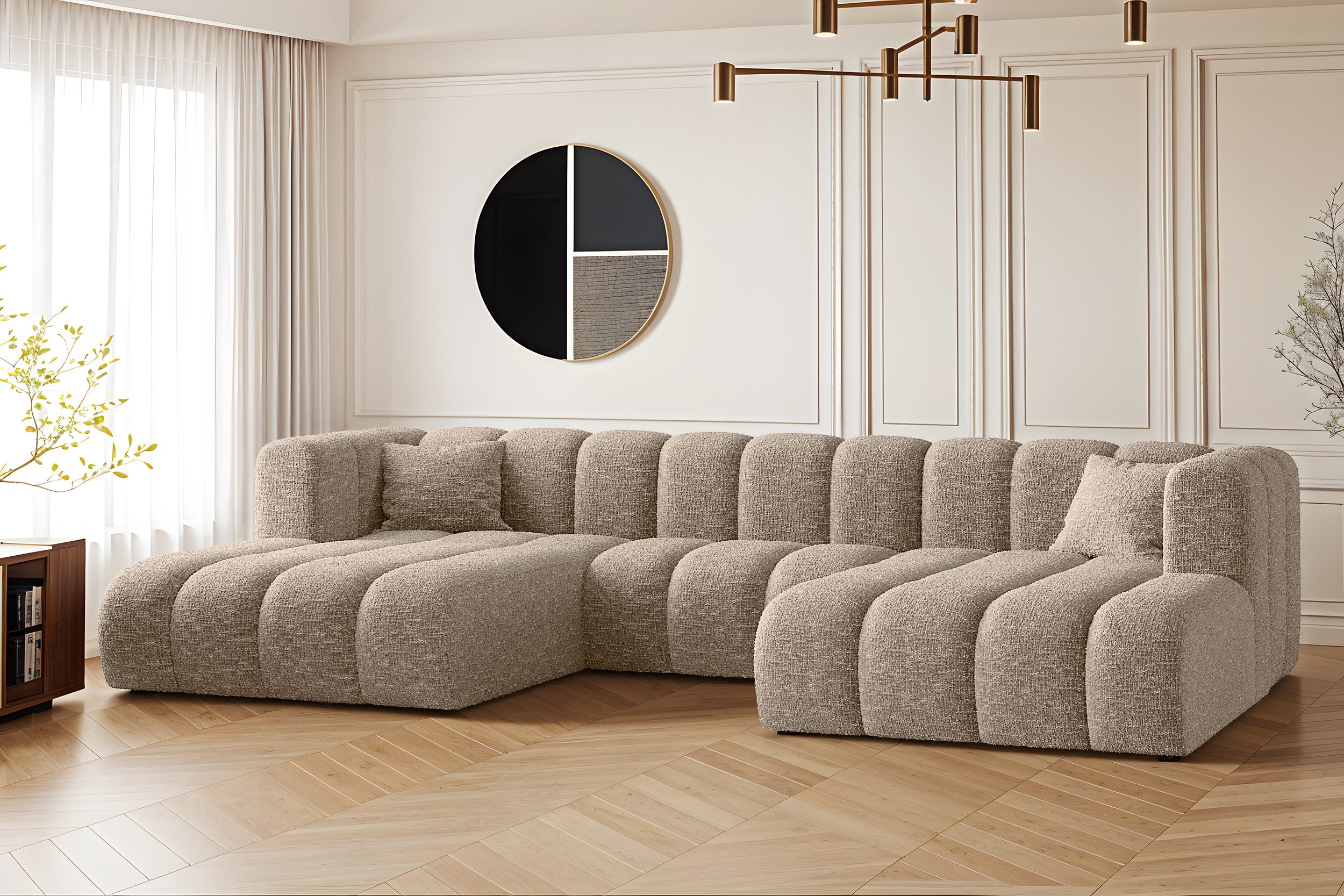 Suchen Sie ein Sofa, das Funktionalität, Eleganz und modernen Stil vereint? Das modulare Sofa Grand ist die perfekte Lösung für jedes Wohnzimmer. Dank seines modularen Designs bietet das Grand-Sofa nicht nur außergewöhnlichen Komfort, sondern auch eine einzigartige Ästhetik, die sich perfekt in moderne, minimalistische oder skandinavische Räume einfügt. Die elegante Erscheinung dank der abgerundeten Formen und der präzisen Nähte verleihen dem Sofa Grand einen modernen und warmen Charakter, der sich in jede Einrichtung einfügt. Das Grand-Sofa wurde mit Blick auf den Komfort im Alltag entworfen. Mit seiner geräumigen Sitzfläche und den hochwertigen Materialien bietet es Komfort für viele Jahre.
