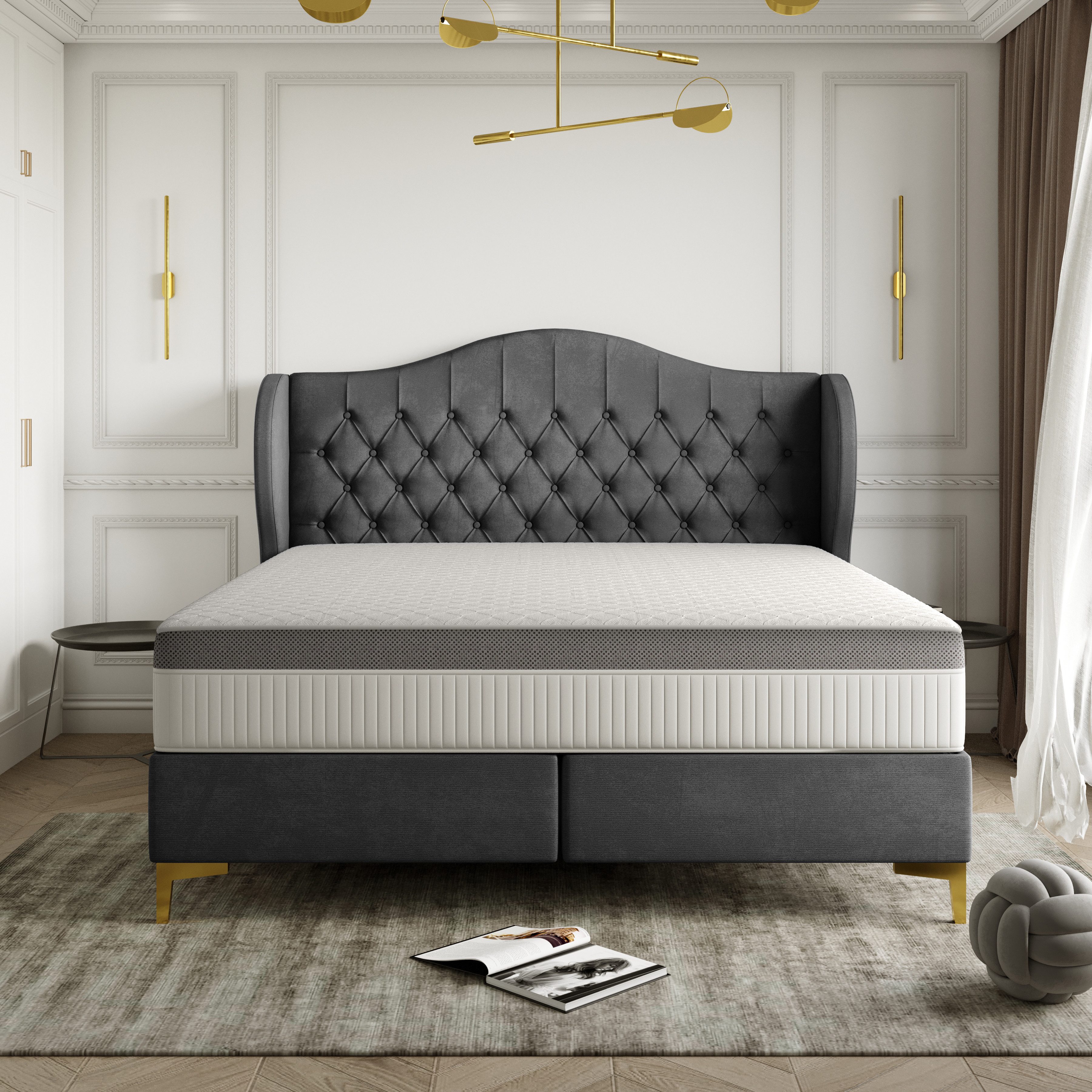 Die im Set enthaltene Taschenfederkernmatratze mit Kokosauflage (Pocket Coconut) bietet optimale Körperunterstützung und ein angenehm festes Liegegefühl. Die Kokosmatte verbessert die Luftzirkulation, wirkt antiallergisch und verlängert die Lebensdauer der Matratze. Perfekt für alle, die Wert auf gesunden Schlaf und zeitlose Optik legen.