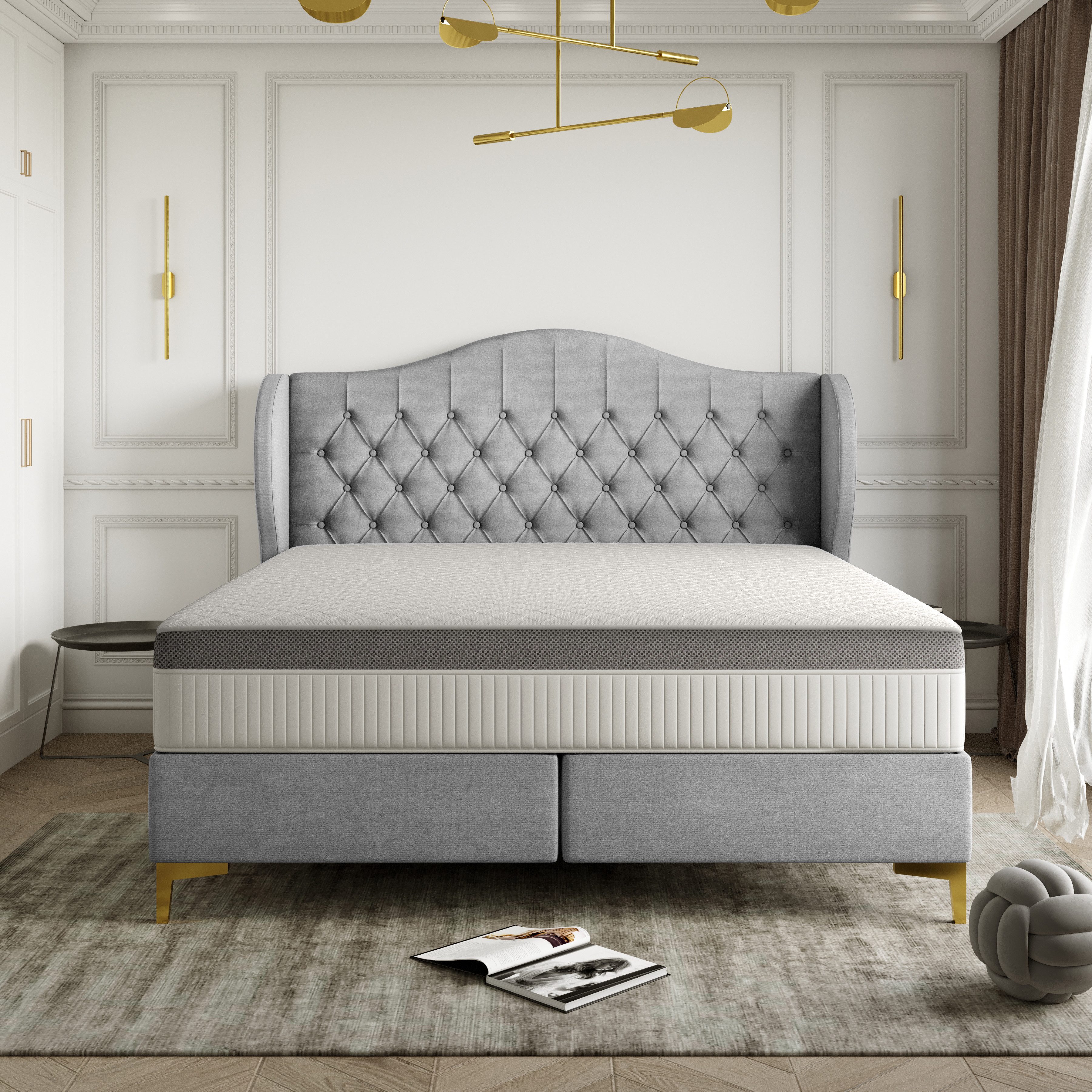 Das LEGEND Bett besticht durch seine massive Bauweise, das reich verzierte Kopfteil und ein modernes, elegantes Design, das sich ideal in jedes Schlafzimmer einfügt. Die stabile Konstruktion sorgt für Langlebigkeit und ein komfortables Schlaferlebnis.