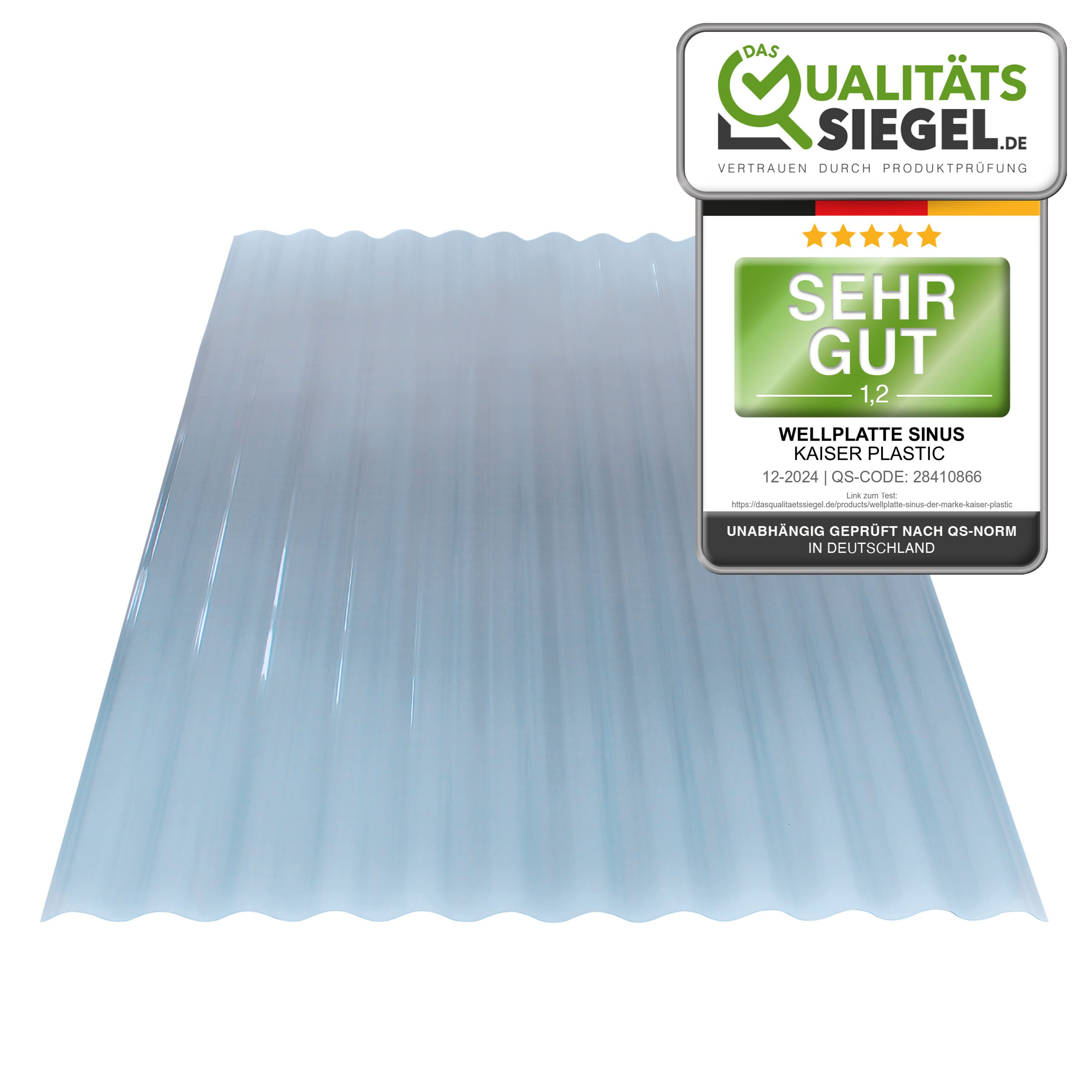 Kaiser plastic Wellplatte Sinus aus Polycarbonat ( PC ) | Glatte Oberfläche | Farbe: klar | Abmessung: 90 x 120 cm | 0,8 mm Stärke | Made in Germany