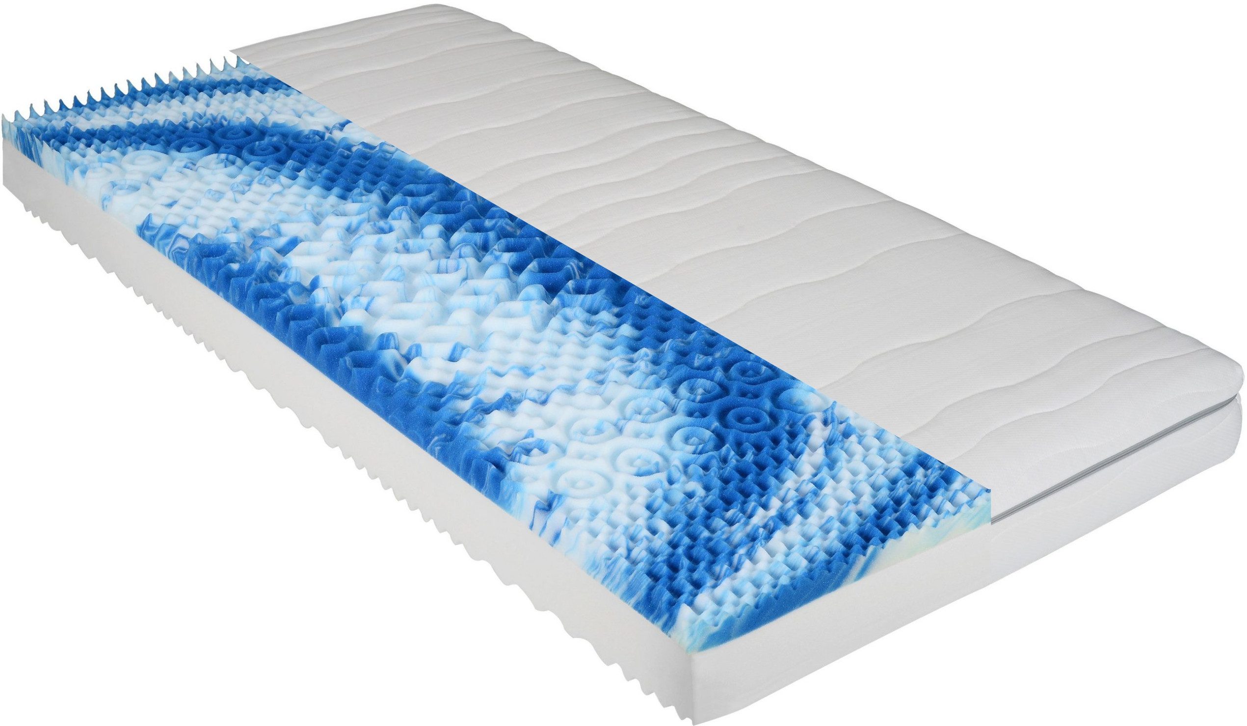 Kernaufbau | Gelschaum (Noppenstruktur, 3 cm hoch, 40 kg/m³), Komfortschaum (Welle, 12,5 cm hoch, 28 kg/m³) |