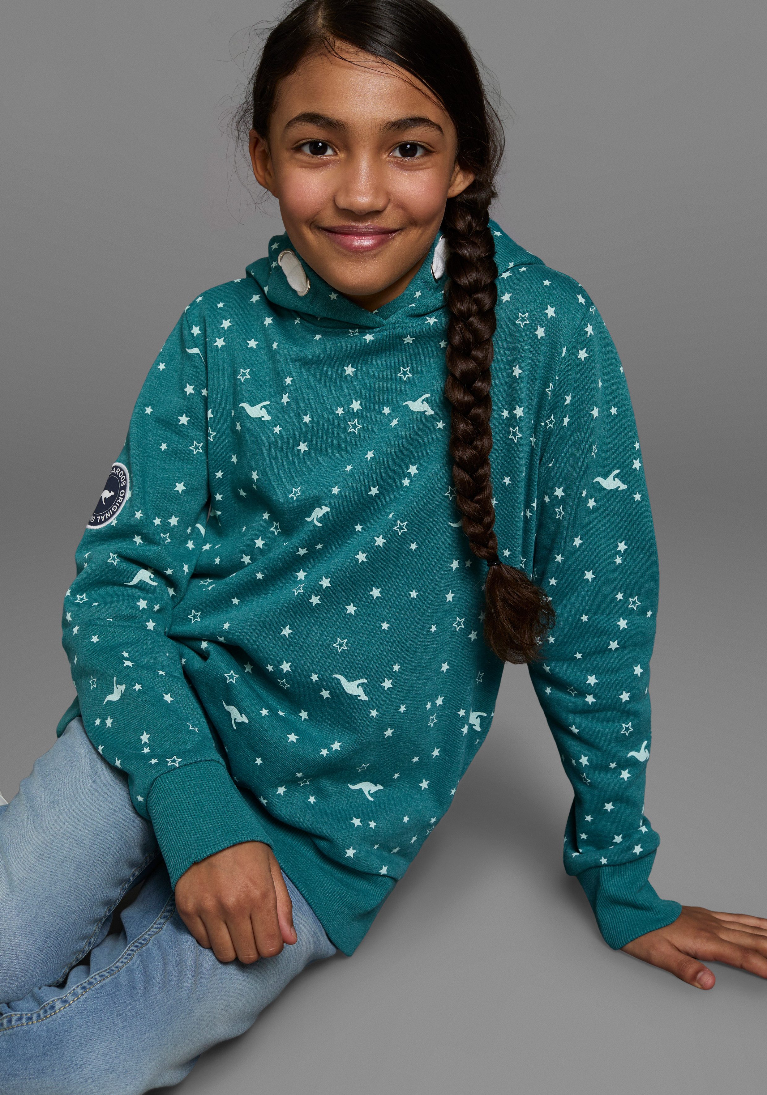 Besondere Merkmale | Langarm, bedruckt, mit Kapuze, aus Baumwollmischung |