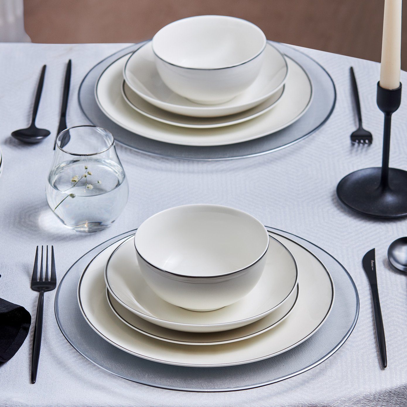 Karaca Leon Platinium 24 Teiliges Porzellan-Geschirrset für 6 Personen, Porzellan, Platzteller, Grubenplatten, Tortenplatten, Schalen, Einzigartiges Design, Tägliches Und Besonderes Geschirrset