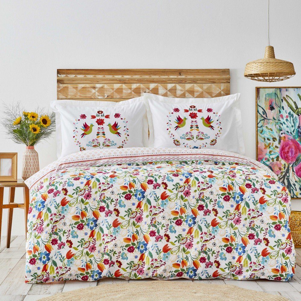 Diese bunte Bettwäsche weckt mit ihren lebendigen Farben positive Emotionen. Das Parlin-Set begrüßt Sie jeden Morgen nach dem Aufwachen mit seiner fröhlichen Ausstrahlung. Sein quirliges Design trägt mit beschwingten Mustern zur gut gelaunten Morgenstimmung bei. Der kuschelige Baumwollstoff sorgt dabei für den Wohlfühlfaktor. Das saugfähige und atmungsaktive Material schafft ein angenehmes Schlafklima und beschert Ihnen ein ausgeschlafenes Erwachen. Ihre Schlafzimmereinrichtung gewinnt durch dieses dekorative Bettwäsche-Set an gestalterischer Klasse.