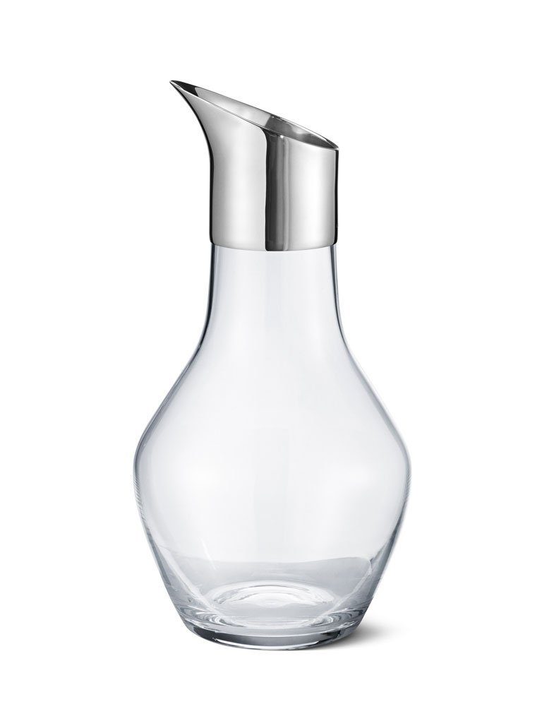Georg Jensen - SKY Wasserkrug Inspiriert von Barbrys Liebe zum nordischen Design, repräsentiert diese Kollektion einen coolen Minimalismus mit Funktion im Herzen. Die intelligente Form des Wasserkruges bietet mit seiner angeschnittenen und handpolierten Edelstahl-Öffnung einen optimalen Ausschank. Der Materialmix der SKY Kollektion - Glas, Edelstahl, Marmor und Holz - wertet jeden gedeckten Tisch optisch auf und erzeugt eine sanfte Lebendigkeit. Georg Jensen SKY bietet perfekte Produkte für einen gemütlichen Abend mit Wein, Käse und feinen Köstlichkeiten. Das Glas wurde in Portugal handgefertigt. Der SKY Wasserkrug ist nicht spülmaschinengeeignet.