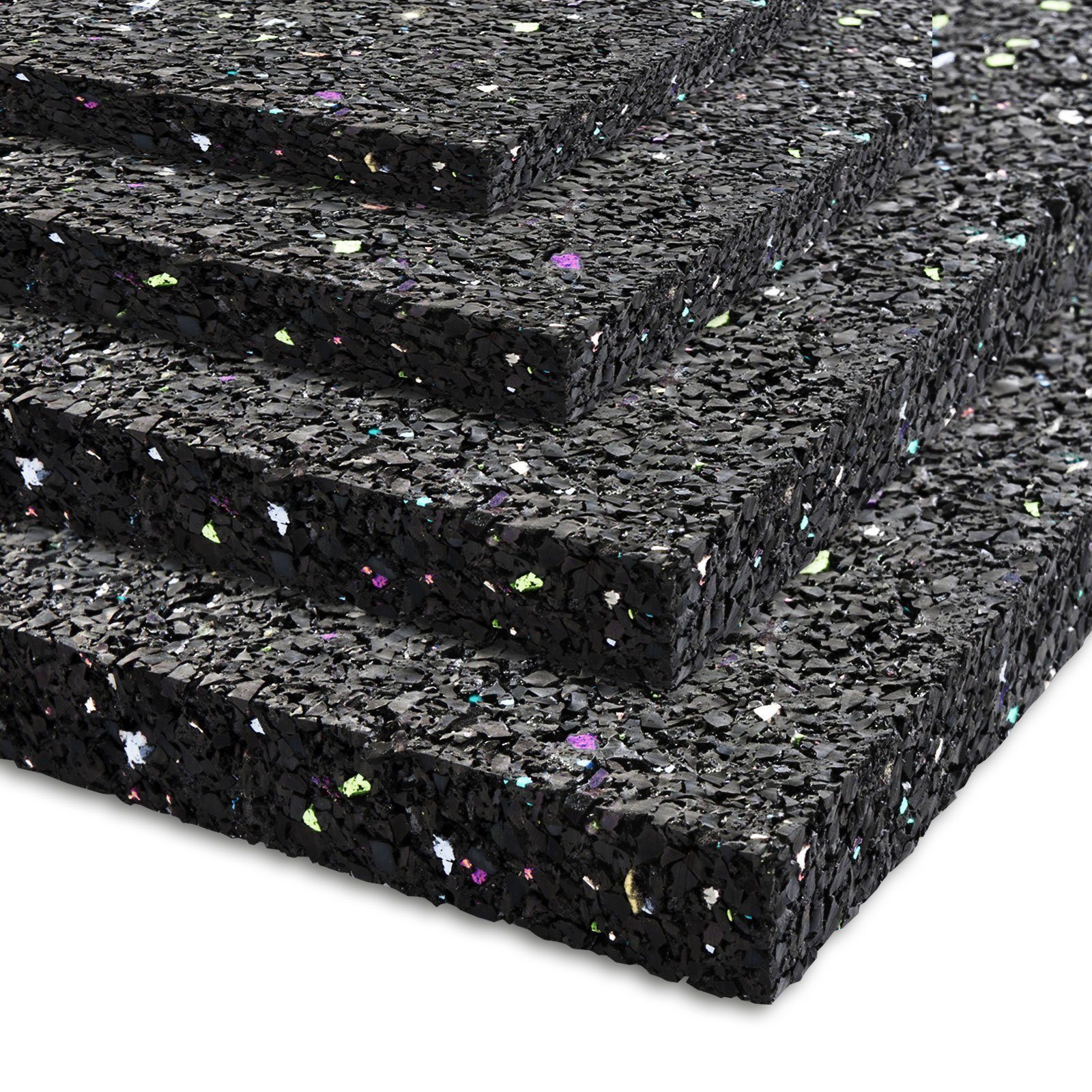 Erhältlich ist die Antivibrationsmatte in vier Stärken (5 mm, 8 mm, 10 mm, 20 mm) und als 60x60 cm Bodenfliese.