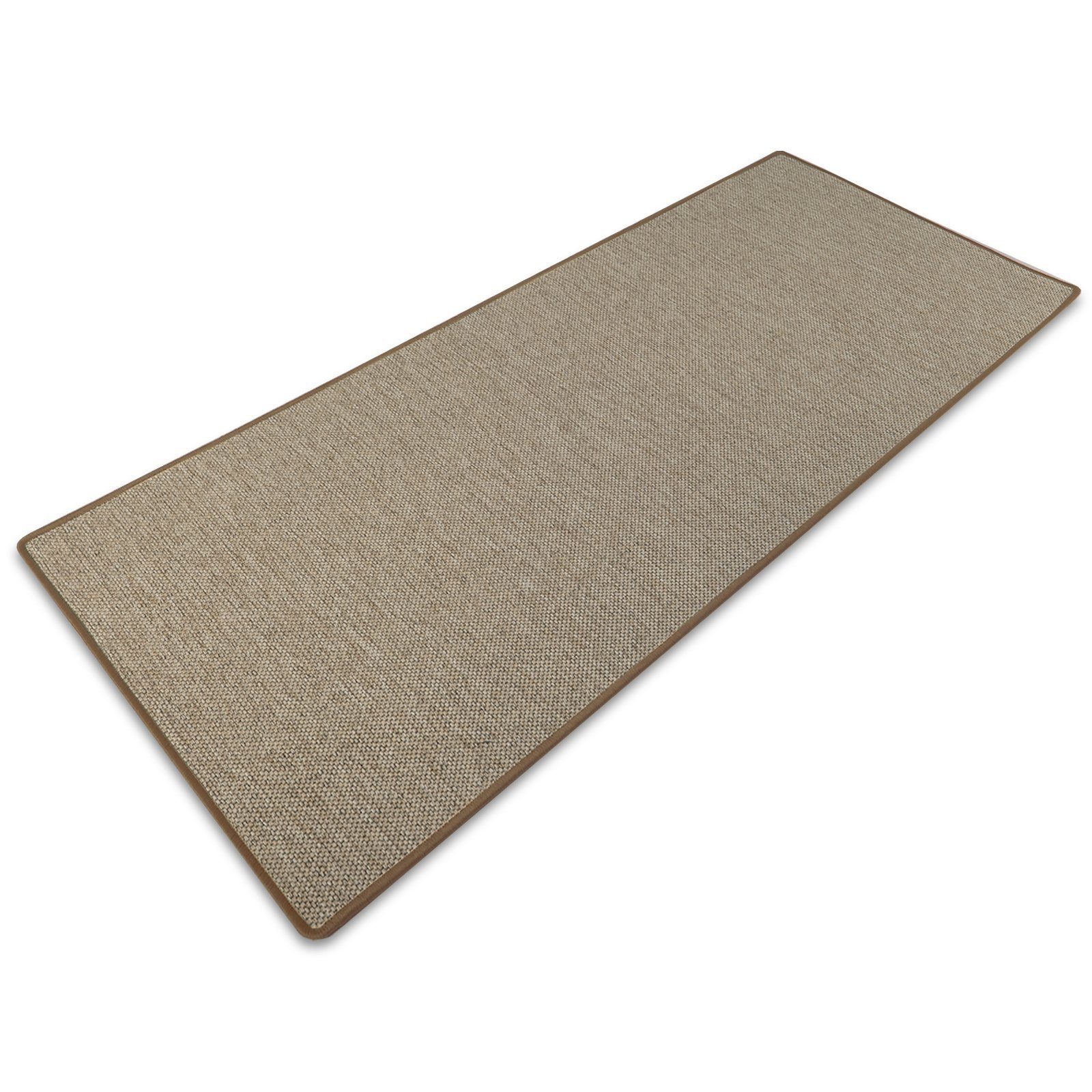 In eleganter Sisaloptik gehalten, vermittelt der maßgefertigte Teppich „Haifa“ schon beim Betrachten ein außerordentlich angenehmes Wohngefühl. Im direkten Vergleich zu seinem Pendant aus Natur-Sisal zeigt sich die Oberflächenbeschaffenheit des Teppichs etwas weicher. Und so vereinigt der Bodenbelag die Vorzüge eines Kunstfaser-Läufers und das attraktive Erscheinungsbild eines Sisal-Teppichs in sich. Äußerlich sind die Teppiche oder Läufer in Sisaloptik indessen kaum von einem Naturfaser-Teppich zu unterscheiden.