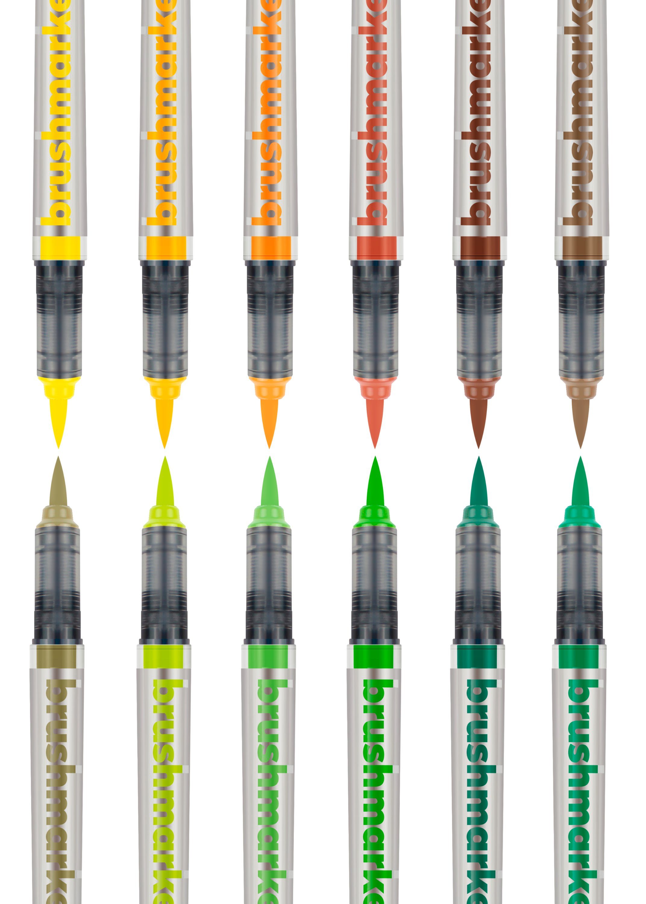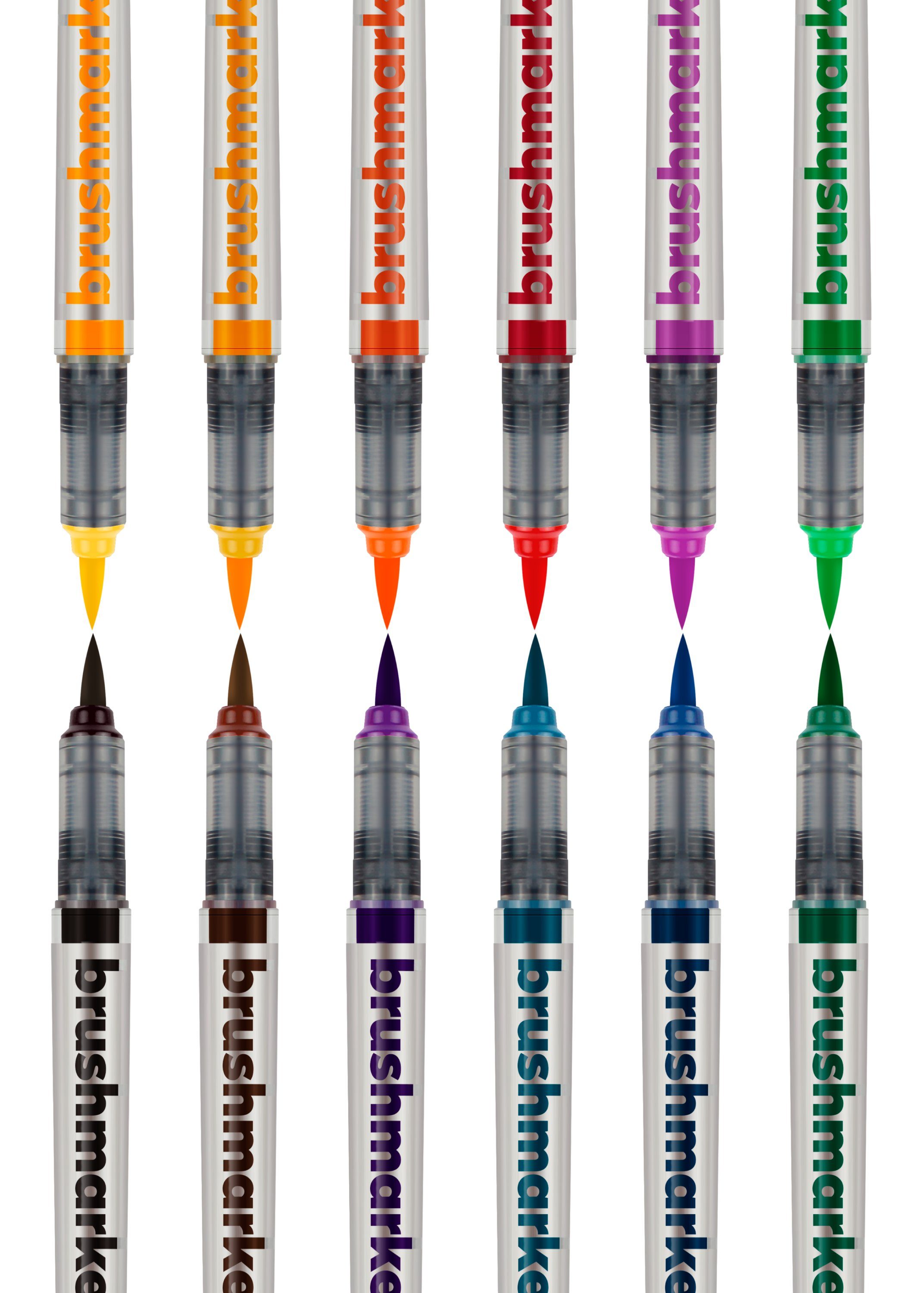 Karin Brushmarker PRO Set mit 12 Farben, wasserbasierte, ungiftige Marker mit einer pinselartigen Spitze. Tolle Marker mit denen Sie wie in der Aquarelltechnik arbeiten können. Viele unterschiedliche Farbtöne, die untereinander gemischt und aufgehellt werden. Durch berühren zweier Spitzen entstehen wundervolle Tonübergänge. Die Marker sind hergestellt auf 'Flüssigtinten'-Technologie, wodurch sich eine Farbintensität bis zum letzten Tropfen ergibt. Die Füllmenge je Marker beträgt 2,4 ml. Ausgestattet mit einer japanischen, haltbaren und flexiblen Nylonspitze sind die Marker doppelt so effizient wie herkömmliche Filtermarker. Tolle Sets mit intensiven Farbkombinationen für Ihre neuesten Projekte.