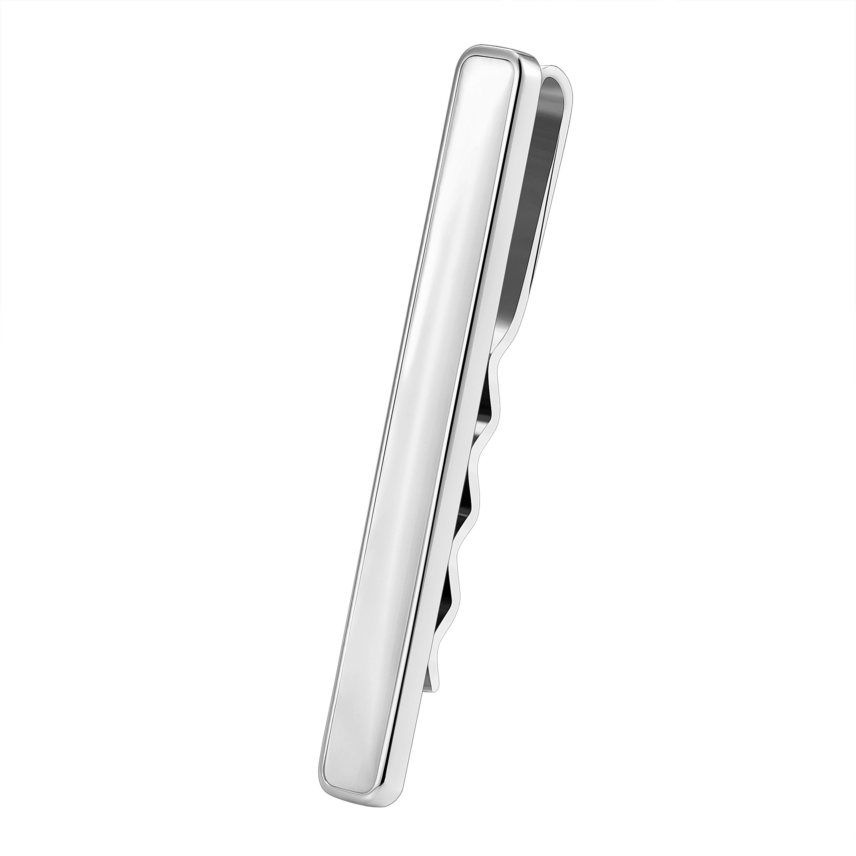 Krawattennadel aus Edelstahl 316L mit Perlmutt Weiss in Präsentbox.