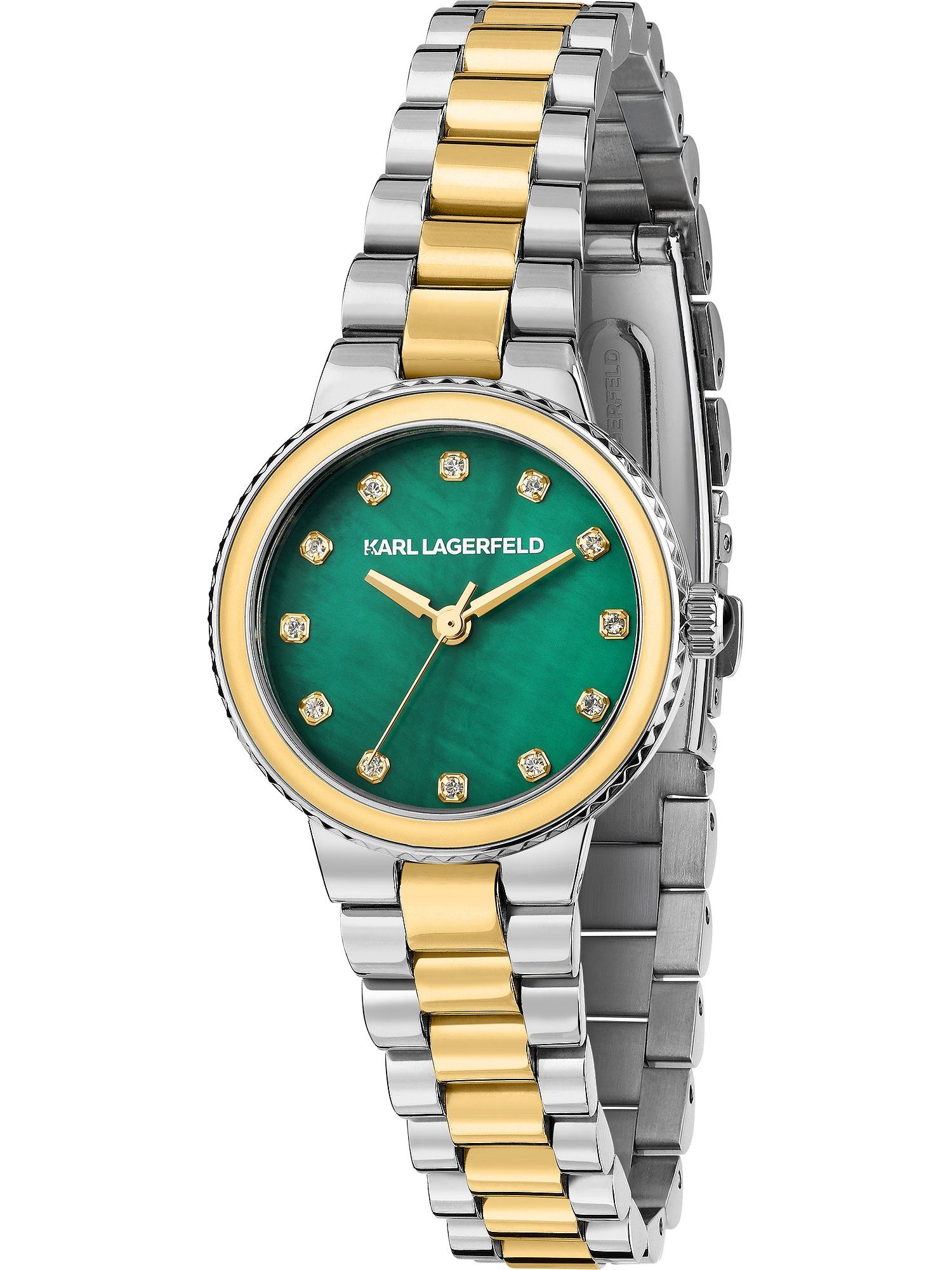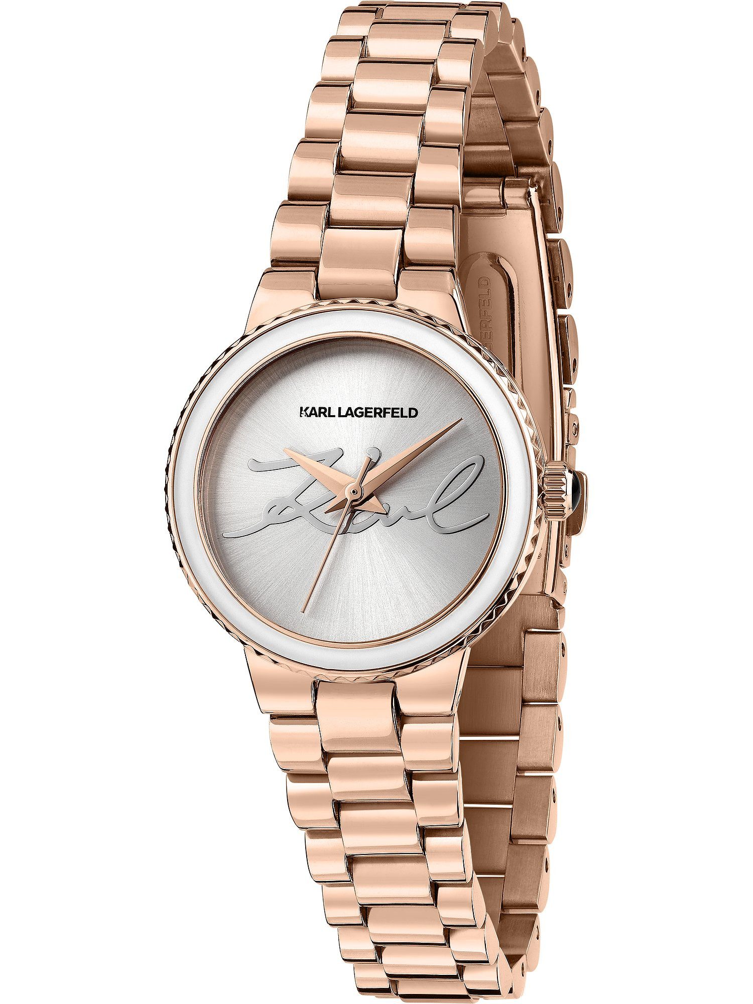 Einfach unverwechselbar - Karl Lagerfeld Uhren spiegeln die einzigartige Handschrift des Modegenies wider. Diese Zeitmesser kombinieren moderne Designs mit einem rebellischen Touch und sind ideal für alle, die sich von der Masse abheben wollen. Ein modisches Statement für dein Handgelenk Diese Damenuhr mit Edelstahl-Gehäuse an einem klassischen Edelstahl-Armband ist dank des sportlich-eleganten Designs der perfekte Begleiter für jeden Anlass. Die Farbgebung komplett in Schwarz lässt die Karl Lagerfeld Kaiser im angesagten All-in-One Look erstrahlen. Für eine dezente Präsenz am Handgelenk sorgt das runde Gehäuse mit einem Durchmesser von 28 Millimetern. Ein Quarzwerk sorgt für die nötige Präzision. Durch den Sonnenschliff ist bei jedem Blick auf die Uhr ein faszinierendes Lichtspiel garantiert. Langlebige Schönheit Ein Mineralglas bietet eine klare Sicht auf das Ziffernblatt und guten Schutz gegen alle Einflüsse, die bei normalem Gebrauch entstehen. Mit einer Wasserdichte von bis zu 50 Metern (5 Bar) kann der Zeitmesser sorglos auch beim Händewaschen und Baden getragen werden. Die Faltschließe erleichtert das Anlegen des Armbands und garantiert sowohl einen sicheren Halt als auch einen guten Sitz am Arm. Kurz gesagt: Die Karl Lagerfeld Kaiser Damenuhr ist ein Statement für guten Geschmack - und ein zuverlässiger Begleiter im Alltag.