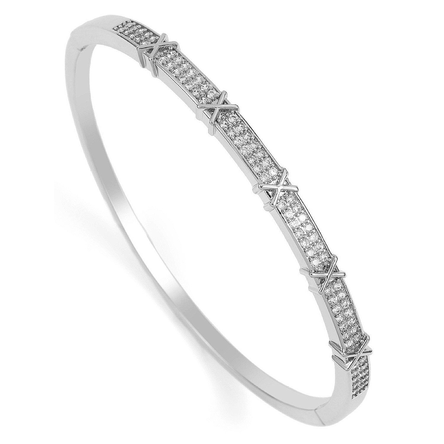 Luxuriöses Design: Der silberne Armreif ist mit mehreren Reihen funkelnder Zirkonia-Steine besetzt, die für strahlende Akzente sorgen.