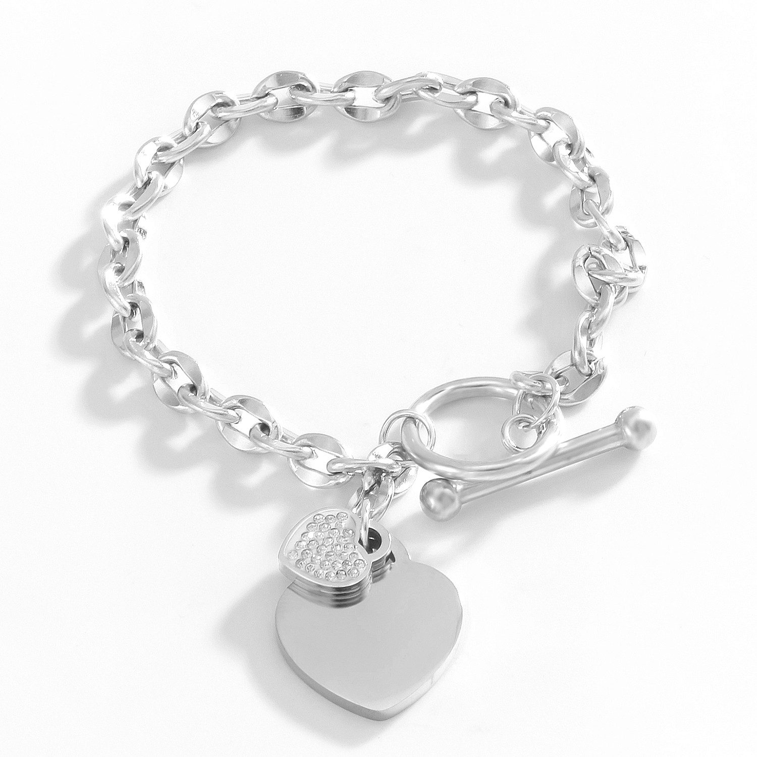 Das Armband zeichnet sich durch zwei bezaubernde Herzanhänger in verschiedenen Größen aus. Das größere Herz hat einen Durchmesser von 2 cm und ist ein echter Blickfang. Das kleinere Herz, mit einem Durchmesser von 1 cm, ist kunstvoll mit funkelnden Zirkonia Kristallen besetzt, die dem Armband einen zusätzlichen Hauch von Glamour verleihen.
