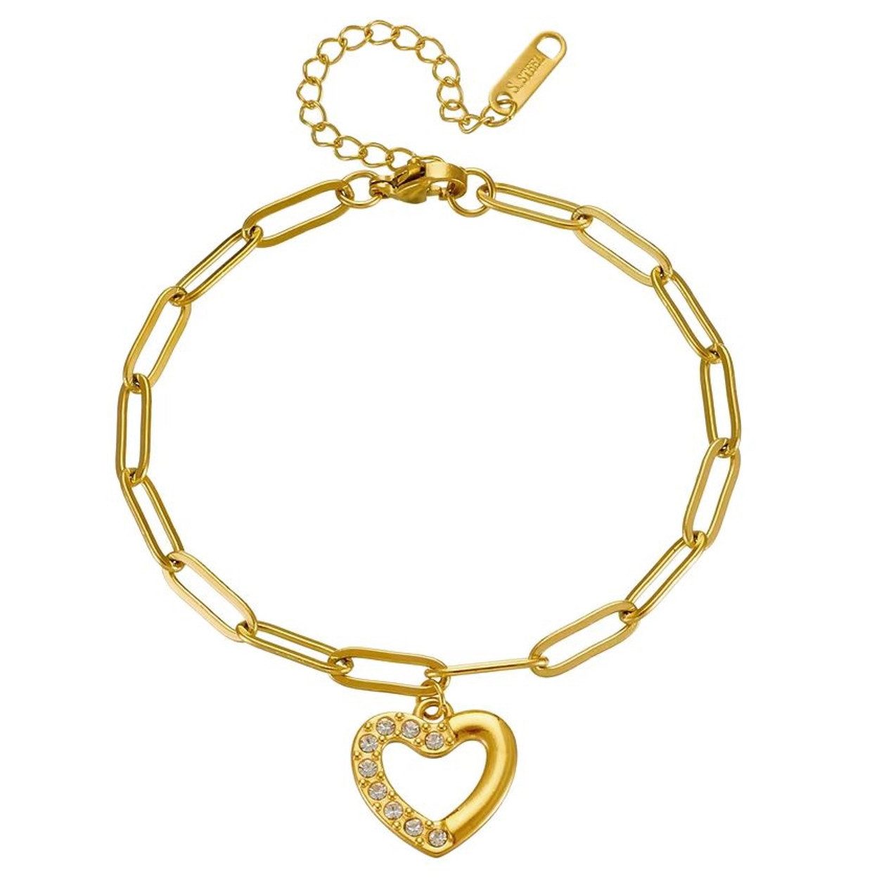 Zeitloses Edelstahlarmband mit Herzanhänger (1,5 cm), in Silber oder Gold – glänzend, stilvoll, sofort tragbar für deinen Alltag oder besondere Anlässe.