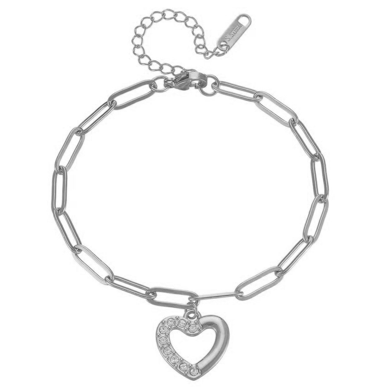 Dieses filigrane Gliederarmband aus Edelstahl vereint klare Formensprache mit romantischem Detail.