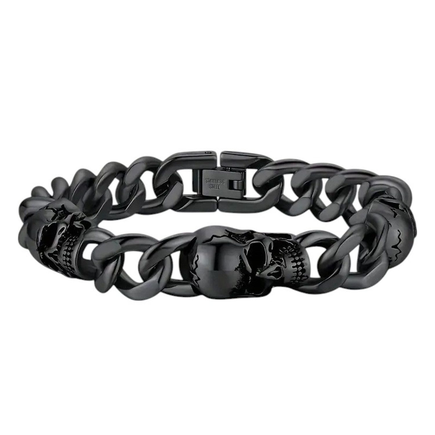 Markantes Herrenarmband aus Edelstahl in Schwarz mit Totenkopf-Design – stark, auffällig und ideal für Männer mit Charakter und Stilbewusstsein.