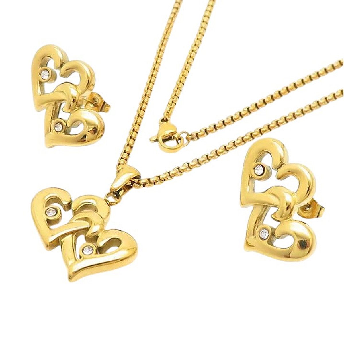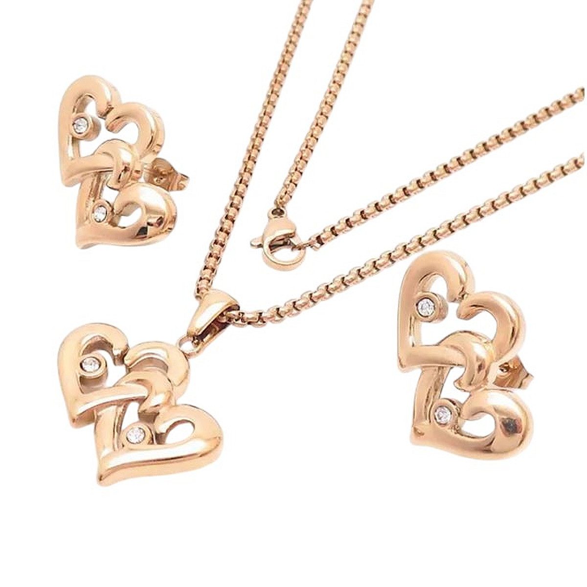 Elegantes Schmuckset von KARMA im Herz-Design, bestehend aus Halskette mit Anhänger und stilvollen Ohrsteckern.