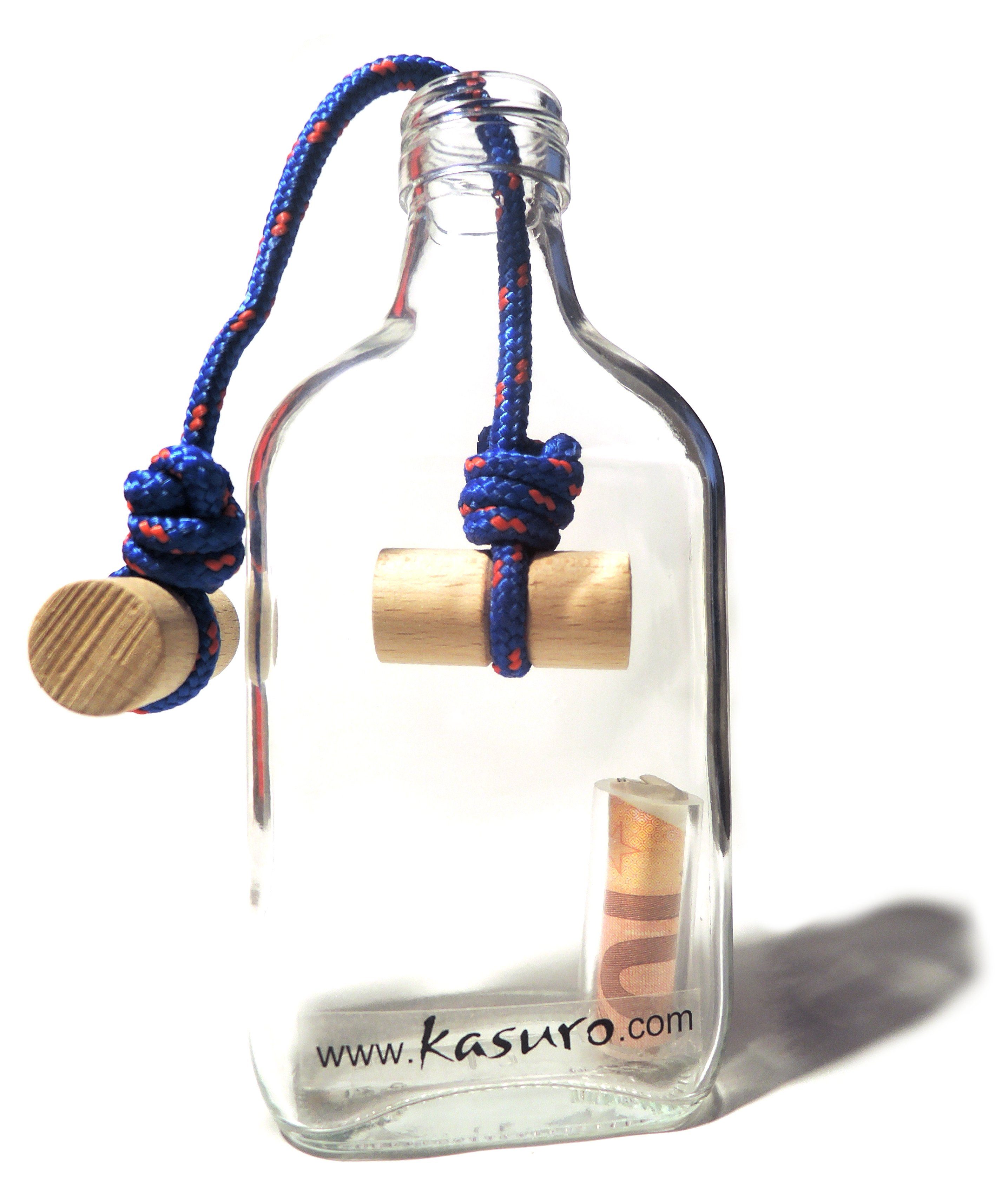 Lieferumfang | Glasflasche, vormontierte Knoten, Holzböppel, Acrylrohr, Anleitung |