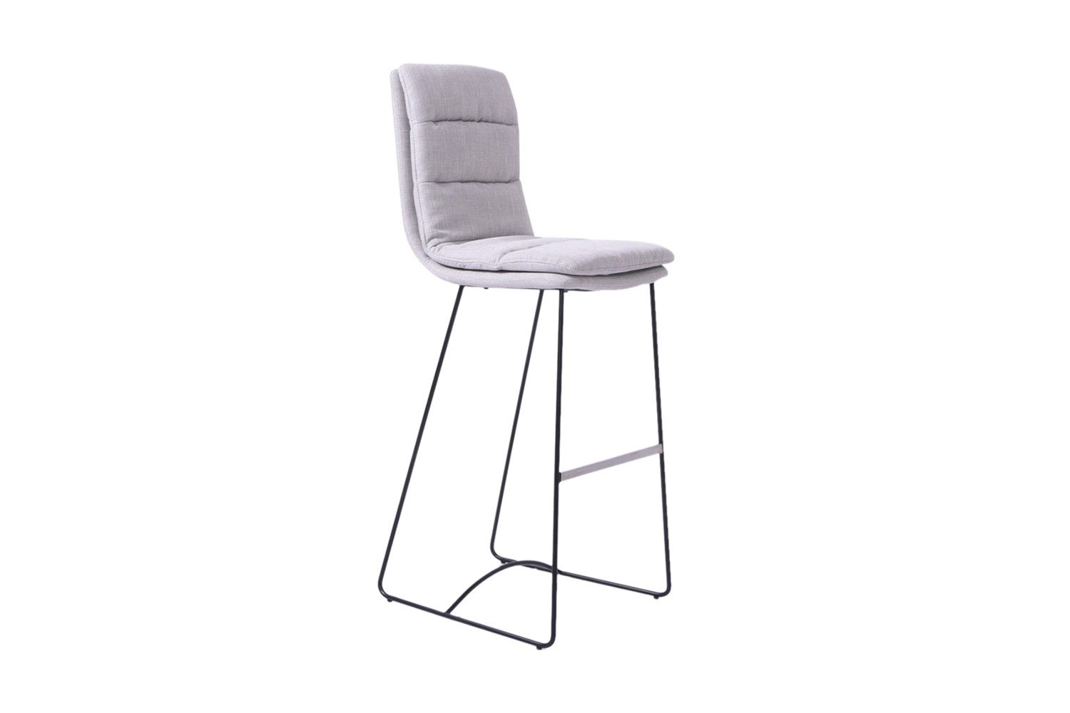 Standfest Das Barhockergestell verfügt über eine Fußablage, die den Sitzkomfort zusätzlich steigert. Das dunkle Gestell des Barhocker harmonisiert hervorragend mit dem hellen Stoff.