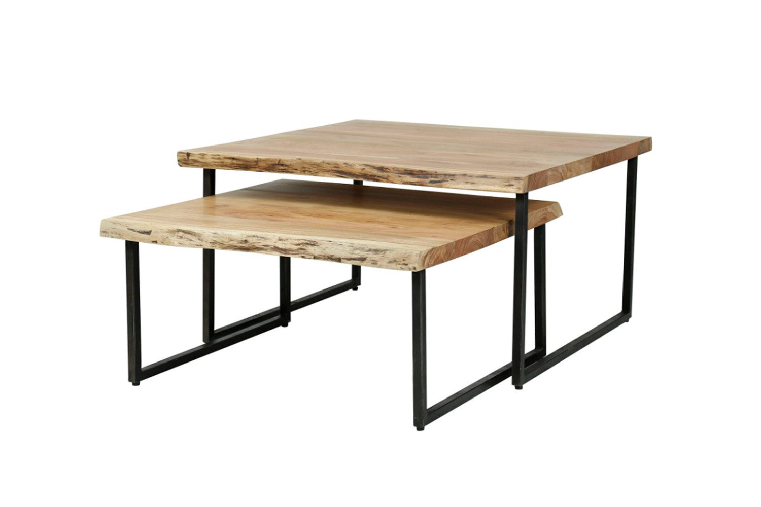 Das Couchtisch-Set AMARLA von KAWOLA bringt Natur und modernes Design in perfekte Balance. Gefertigt aus massivem Akazienholz, beeindruckt jedes Set mit einer einzigartigen Live-Edge-Oberfläche, die die natürliche Schönheit des Holzes unterstreicht. Der robuste Metallrahmen in schwarzer Pulverbeschichtung sorgt für Stabilität und verleiht den Tischen einen zeitlosen, industriellen Look. Das Set besteht aus zwei quadratischen Tischen, die flexibel kombiniert werden können. Der größere Tisch misst 80 x 80 x 45 cm, während der kleinere Tisch mit 70 x 70 x 35 cm perfekt darunter geschoben werden kann. Beide verfügen über eine massive Tischplatte mit 3,8 cm Stärke. Ob im Wohnzimmer, in der Lounge oder als stilvolle Ablage – das Couchtisch-Set AMARLA passt in jedes Zuhause und setzt ein echtes Design-Statement.