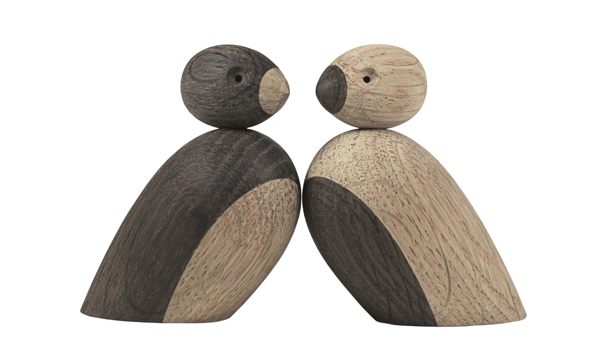 Das Kay Bojesen Spatzenpärchen klein vereint den Charme skandinavischer Gestaltung mit handwerklicher Perfektion. Gefertigt aus unbehandelter Eiche und Räuchereiche, bringen die beiden Spatzen natürliche Wärme und Eleganz in jedes Zuhause. Ihr minimalistisches Design verkörpert die unverwechselbare Formensprache des dänischen Designers.