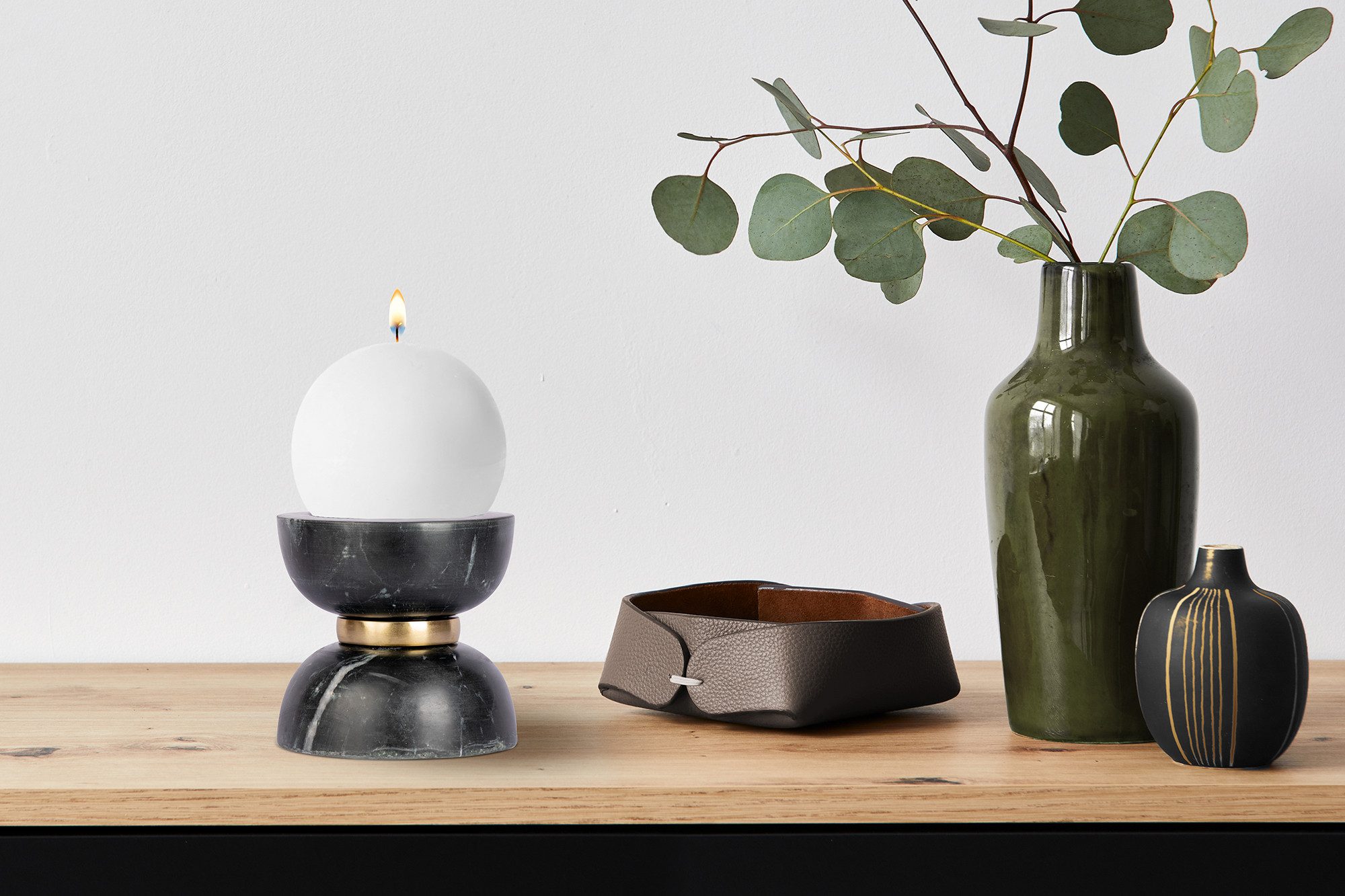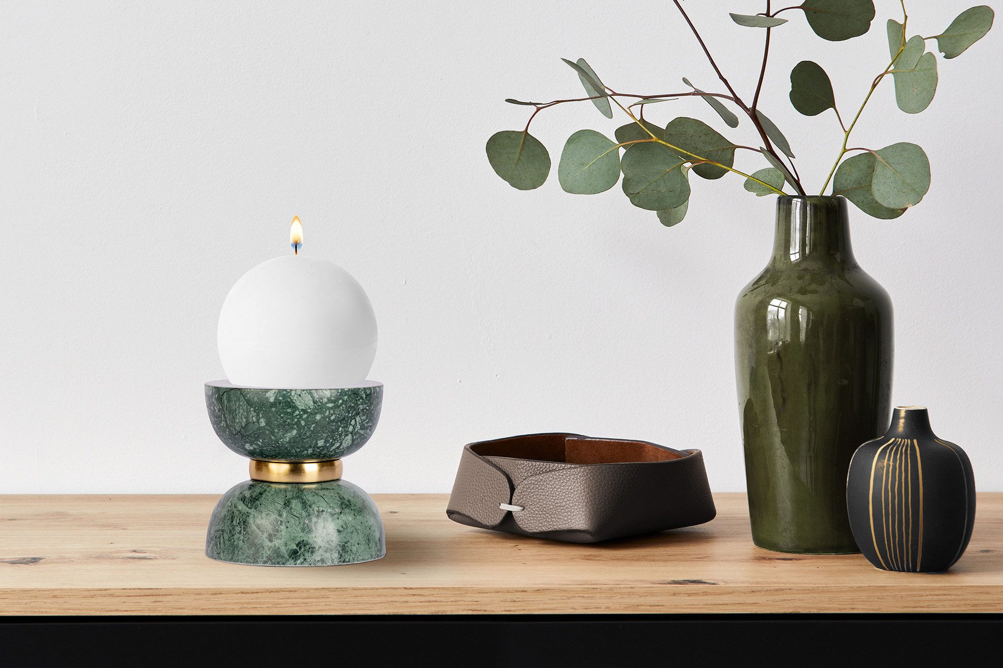 **Antike Deko-Schönheit für stimmungsvolle Momente** Dieser edle Kerzenhalter verleiht jeder noch so kleinen Flamme einen Hauch von Opulenz. War Marmor bereits in der Antike ein Symbol für Reichtum, lässt sich mit diesem antik anmutenden Kerzenhalter auch zu Hause ein Gefühl von Luxus genießen. Die edle Dekoration ist aus Marmor handgefertigt und setzt auf der Fensterbank oder gedeckten Festtafel warmes Kerzenlicht beeindruckend in Szene. Ein goldfarbener Ring in der Mitte komplettiert das außergewöhnliche Design des Kerzenhalters, der in verschiedenen Farben für dekorative Akzente im eigenen Zuhause sorgt. Hinweis: Marmor ist ein Naturstein, welcher in der Farbe und Marmorierung gegenüber der Abbildung immer abweichen kann. Jedes Produkt ist ein Unikat. Spezifikationen: • Farbe: Grün / Schwarz / Weiß • Material: 95% Marmor, 5% Aluminium • Größe: 12,75cm (L/T) x 12,75cm (B) x 12,75cm (H)