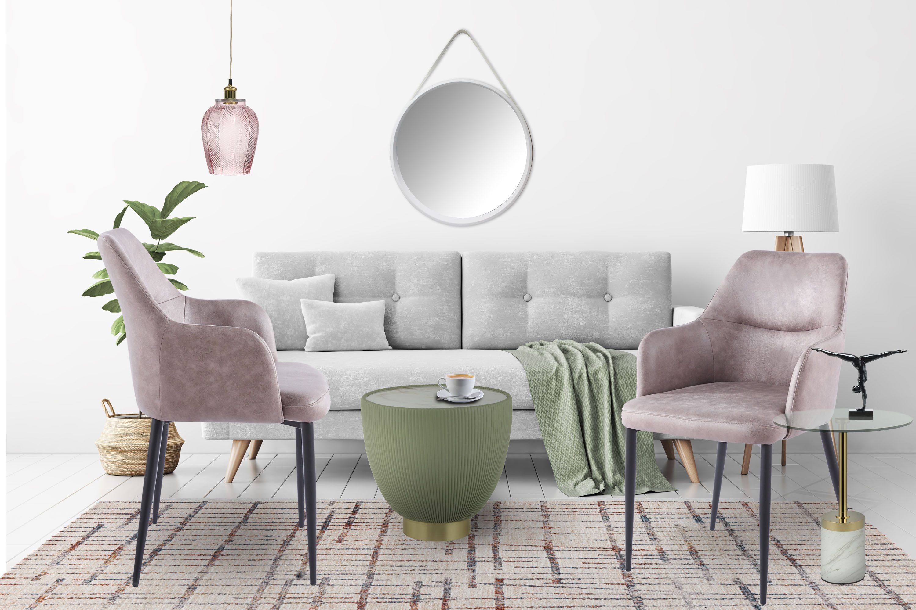 Sitz: 100% PES in Wildleder-Look, Schaumstoff, Sperrholz Gestell:100% Eisen