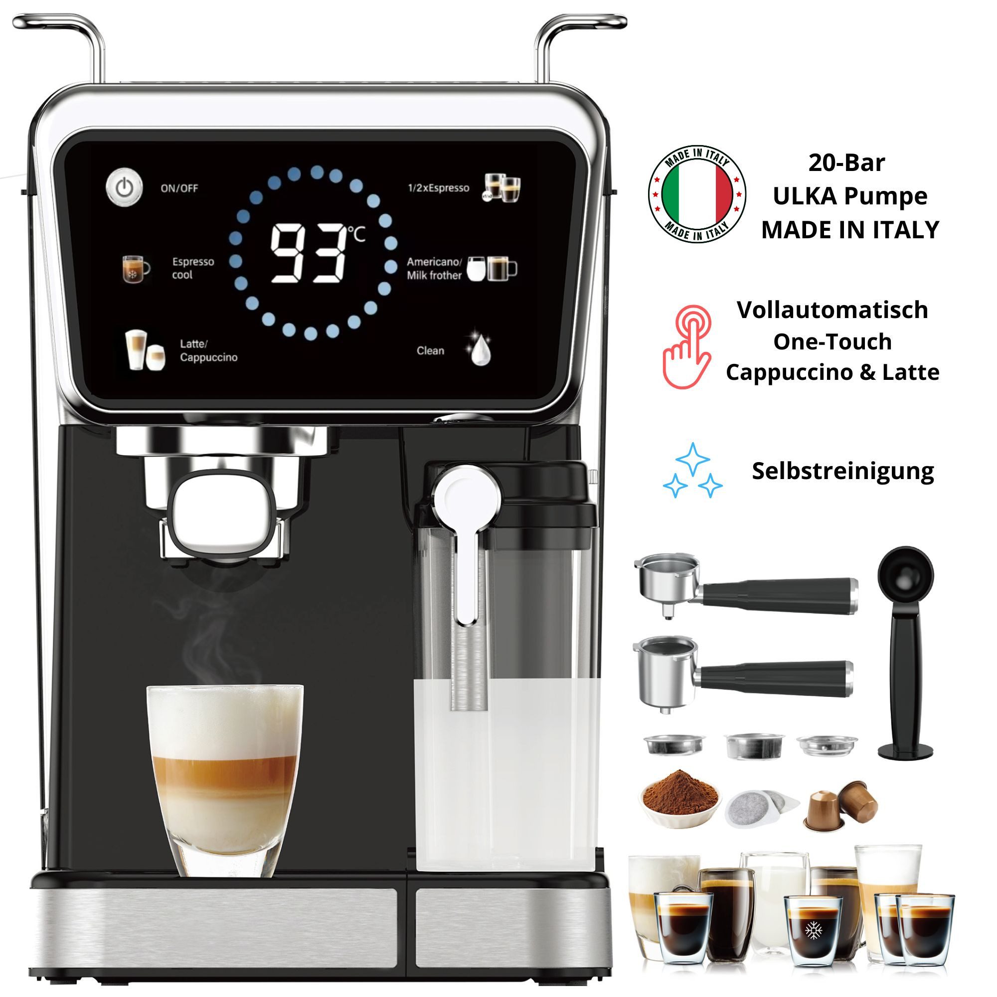 Top-Features | 3 in 1 Siebträgermaschine Automatische Ausgabe von Cappuccino & Latte 7 Kaffeearten und Selbstreinigung Ulka Pumpe – Made in Italy |