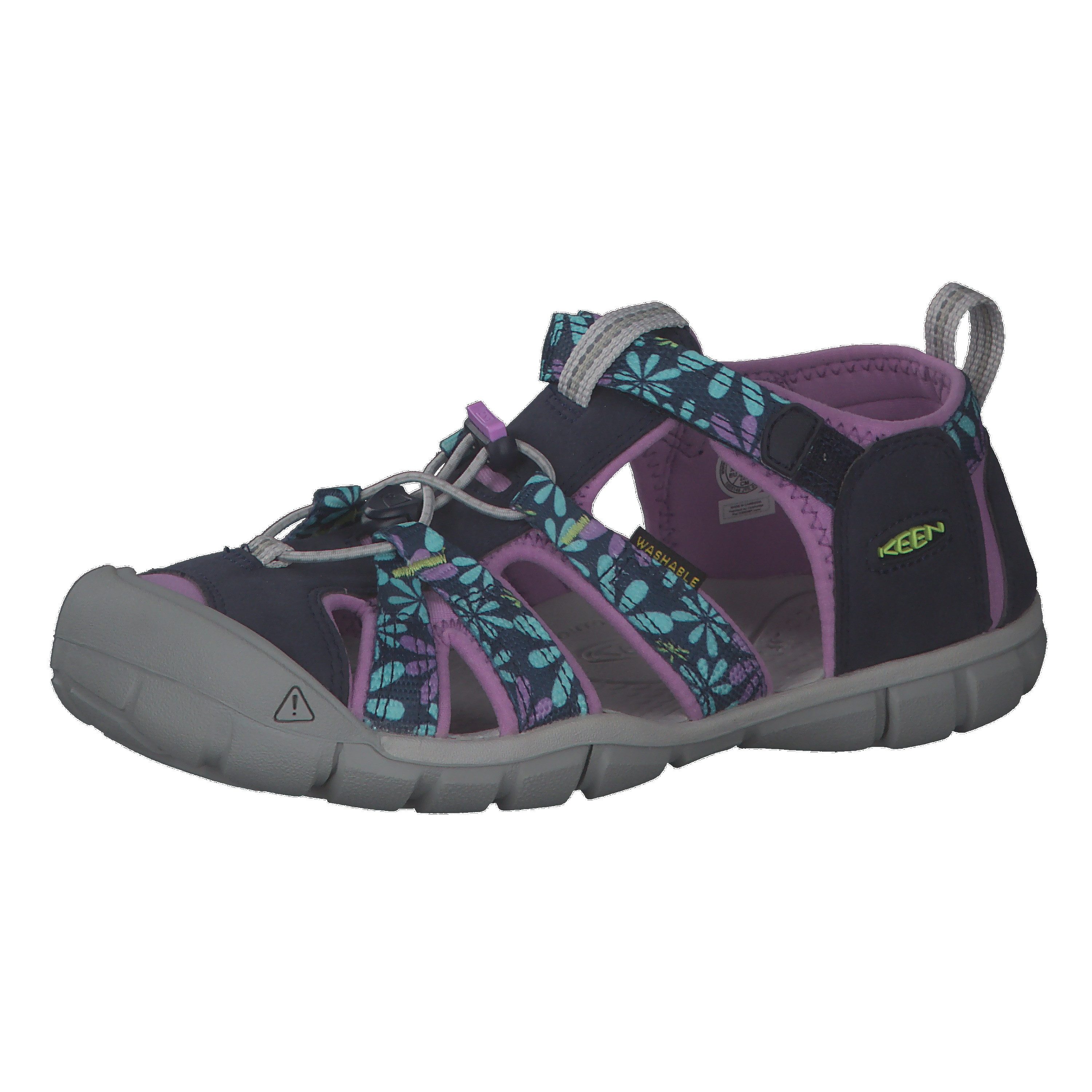 Keen Kinder Sandale Seacamp 2 CNX. Wir haben aus unserer legendären Hybrid-Wassersandale für Kinder mithilfe unserer flachen CNX-Gummilaufsohle eine leichtere, biegsamere Version gemacht. Dieser beliebte wassertaugliche Schuh gibt Kleinkindern das Gefühl für den Untergrund, das sie brauchen, um auf unterschiedlichem Terrain Halt zu finden. Und Du hast die Gewissheit, dass ihre kleinen Zehen sicher geschützt sind, während sie die Welt da draußen erkunden. Unser einzigartiger Zehenschutz aus Gummi schützt Kinderfüße vor dem Ausrutschen und Stolpern beim Spielen im Freien. Den kinderfreundlichen Verschlüssen können sich Kinder ganz einfach selbst anziehen und schnell nach draußen flitzen. Obermaterial: Textil. Futter und Decksohle: Textil. Laufsohle: Sonstiges Material.