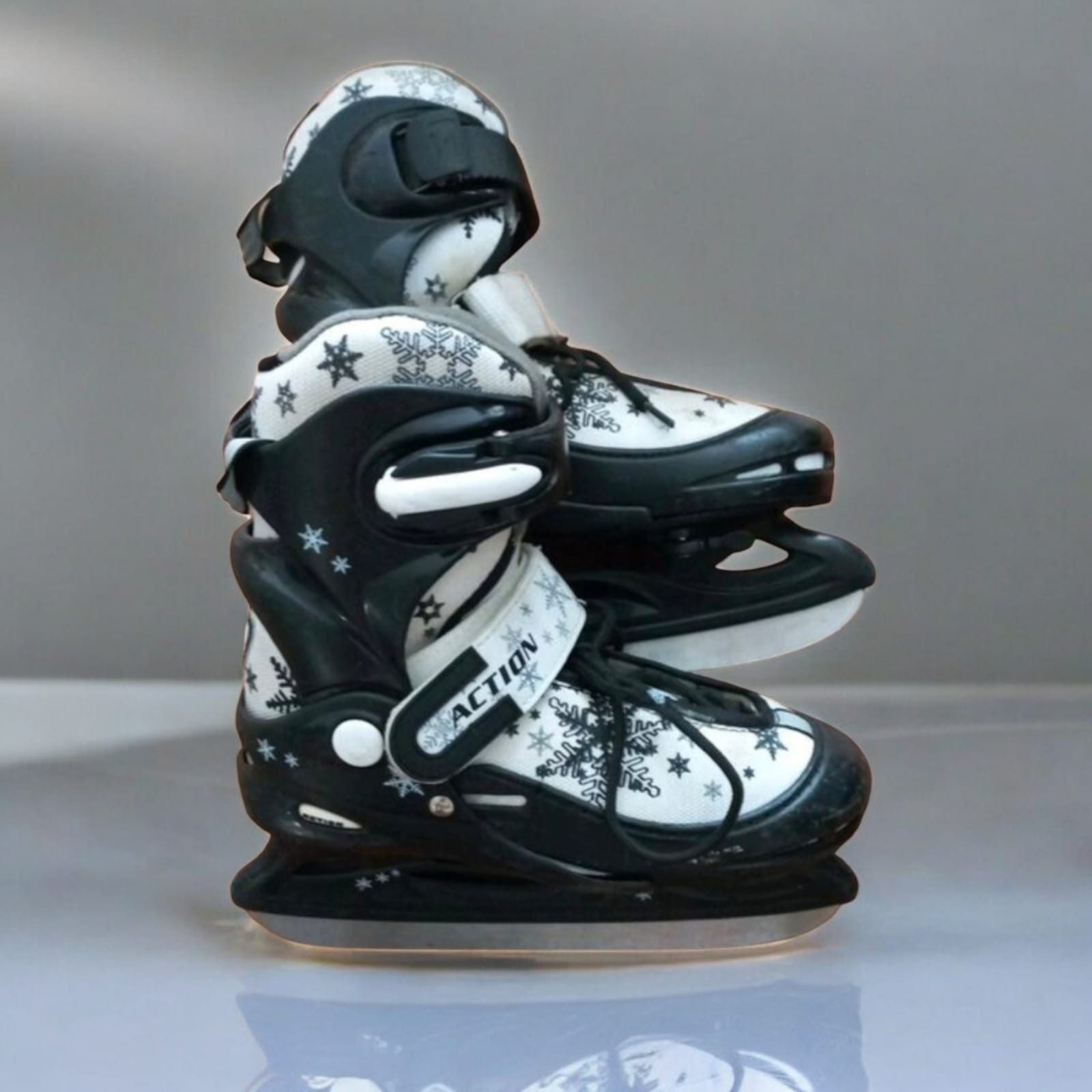 Produktinformationen "Schlittschuhe Verstellbare von 30-33 PW-211F Black" Zustand: Neu Sind bereits geschliffen und sofort einsatzbereit Größen verstellbar durch ein 4 stufiges Verstellsystem Optimaler Schutz vom Umknicken durch den Hartplastikschuh Hohe Seitenverkleidungen schützen den Knöchel beim Stürzen Softbootschuhe oft Innenschuh Innen anatomische Knöchelpolsterung Weiche Zunge Mit Futter und Thermosohle Leichtes an- und ausziehen mit Hilfe von Verschlussschnallen Wasserdicht Rostfreie Stahkufen Die Außenhülle besteht aus kratz- und schlagfestem Kunststoff mit Gelenk Befestigungen sind: Schnürung, Ratschband mit Verstellung und Klettband Gr. verstellbar 30-33 Achtung! Mit Schutzausrüstung benutzen.