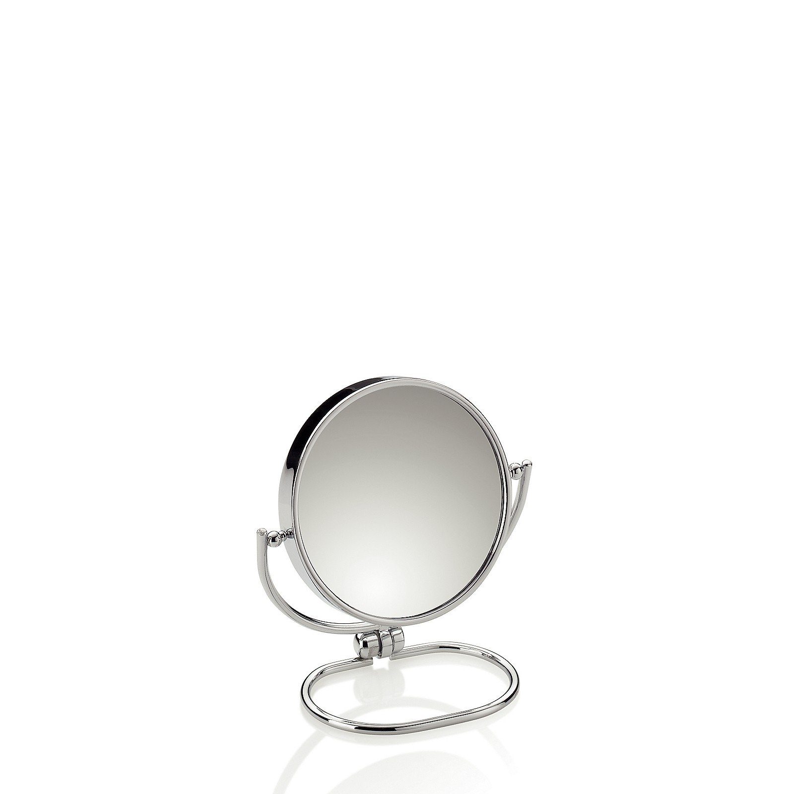 So zeigt sich der Spiegel als idealer Partner beispielsweise beim Schminken. Ausgesttatet ist der Spiegel zudem mit einem dreh- und verstellbaren Bügel, wodurch er sich leicht in die gewünschte Position bringen oder auch in der Hand gut nutzen läßt. Durch seine Bauweise und geringe Gesamtgröße läßt sich der Spiegel Franca zudem ideal als Reisespiegel nutzen, da er unkompliziert zusammengeklappt werden kann und so Platz in jedem Kosmetikkoffer oder jeder Reisetasche findet. Der Durchmesser beträgt 11 cm, wobei hiervon auf die Spiegelfläche selbst 9 cm entfallen. Die Standfläche beträgt 8,5 x 8,5 cm.
