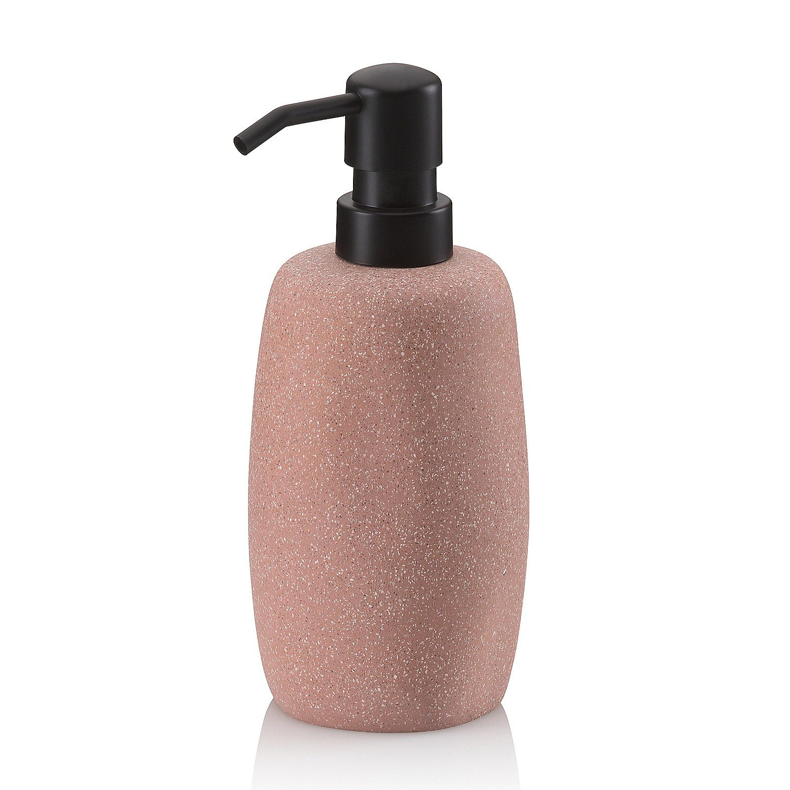 Seifenspender Roda im Farbton terra, hergestellt aus Zement. Bei einer Höhe von 18 cm hat der Seifenspender ein Volumen von 200 ml. Die optisch optimal zum Spender passende Pumpe besteht aus Kunststoff.