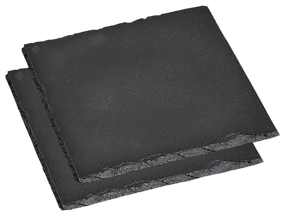 Diese quadratischen Platten wurden aus Schieferstein gefertigt, stark, nahezu unzerstörbar und sehr praktisch in der Küche. Dieser natürliche Rohstoff ist sicher im Kontakt mit Lebensmitteln, zertifiziert. Das Geschirrset besteht aus zwei schwarzen Tellern, modern, sehr effektiv, dank seiner modischen Farben und seines Designs.