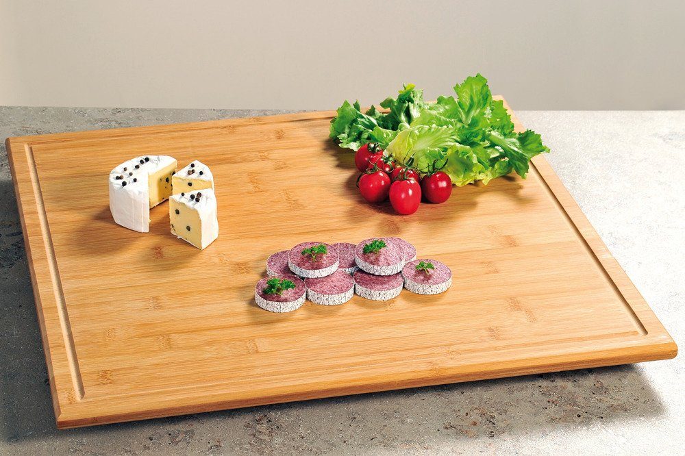 Praktisch und aufgeräumt - Das Küchenbrett verfügt über eine Saftrille, in der sich der Saft von geschnittenem Obst und Gemüse sammelt - Auch Brotkrümel landen hier und nicht auf der Arbeitsfläche