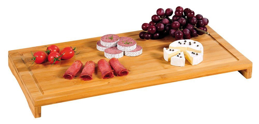 Das Brett ist auch mit Wasserablaufkanälen ausgestattet, die zum Servieren von Obst und Gemüse nützlich sind. Maße 28 x 54 cm sind universell genug, um jedes Induktionskochfeld zu passen, und als Serviertablett kann das Gadget der Mittelpunkt des Festtischs sein. Das Brett sieht gut aus, und die Aussparungen in den Beinen machen es einfach, das Brett zu greifen und anzuheben.