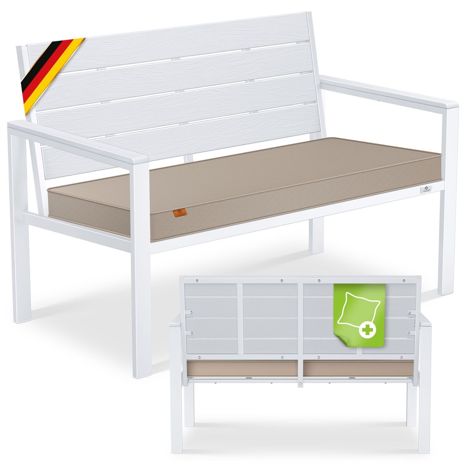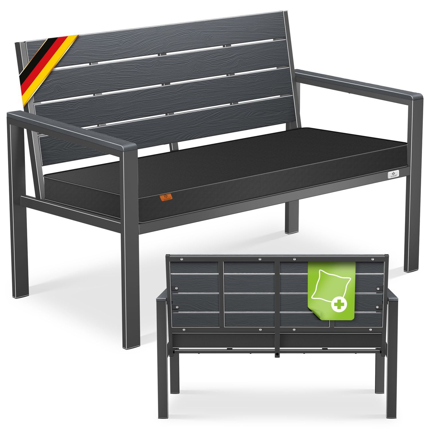 KESSER® Gartenbank mit Kissen – Holzoptik, Parkbank für Garten, Balkon & Terrasse, bis 300 kg belastbar, 2-Sitzer