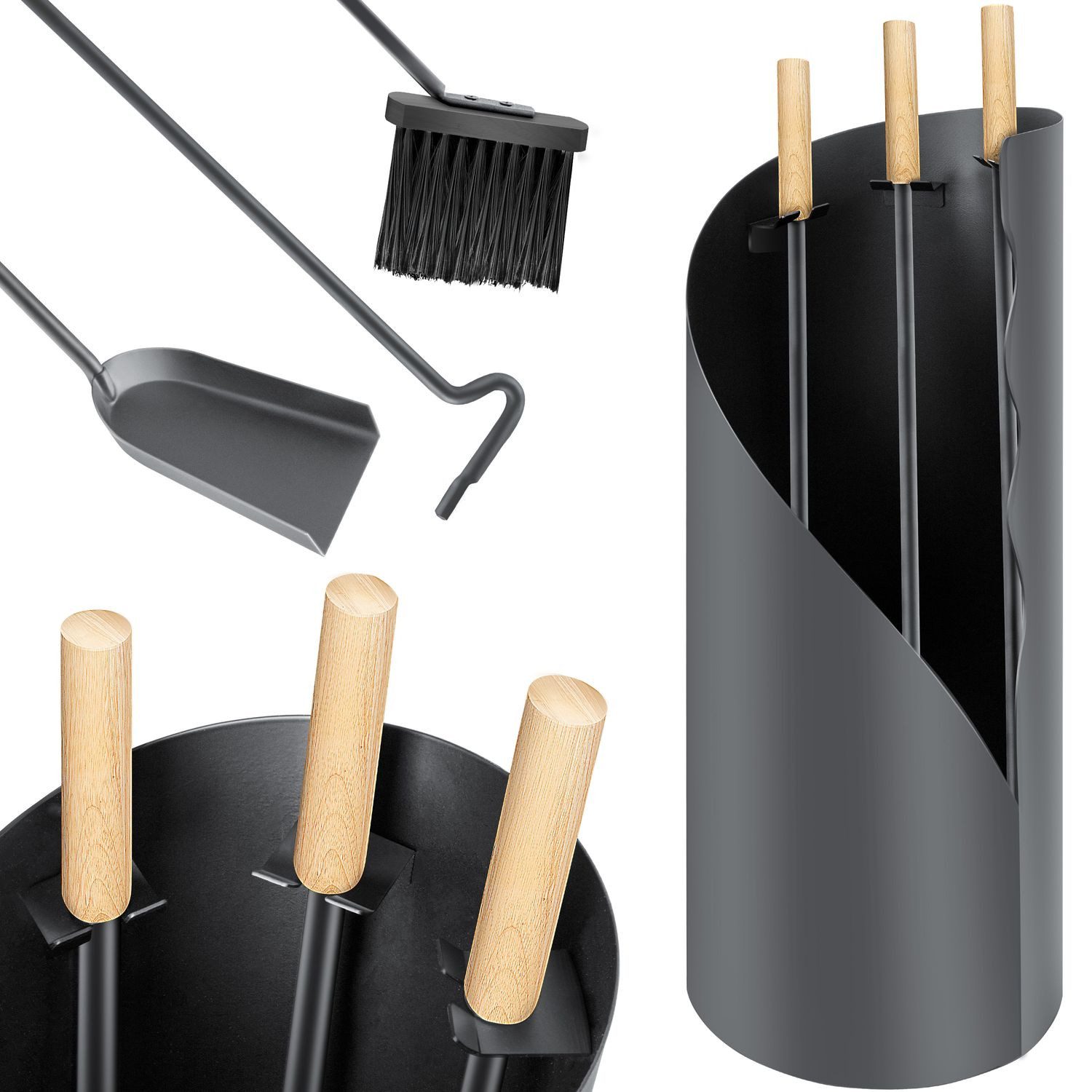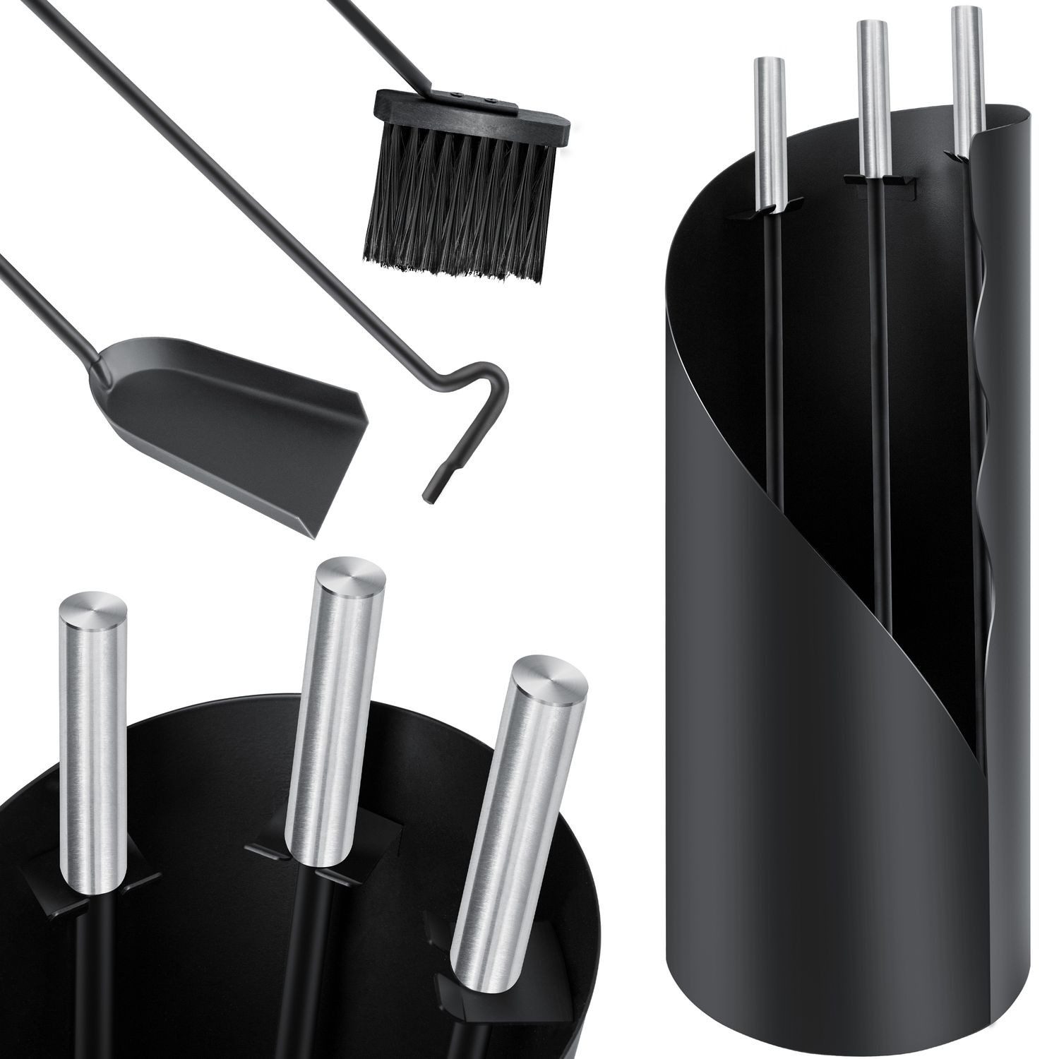 KESSER Kaminbesteck, 4-teiliges Set, stabil und langlebig, inkl. Ständer, Schürhaken, Kaminschaufel und Kaminbesen, beschichteter Stahl